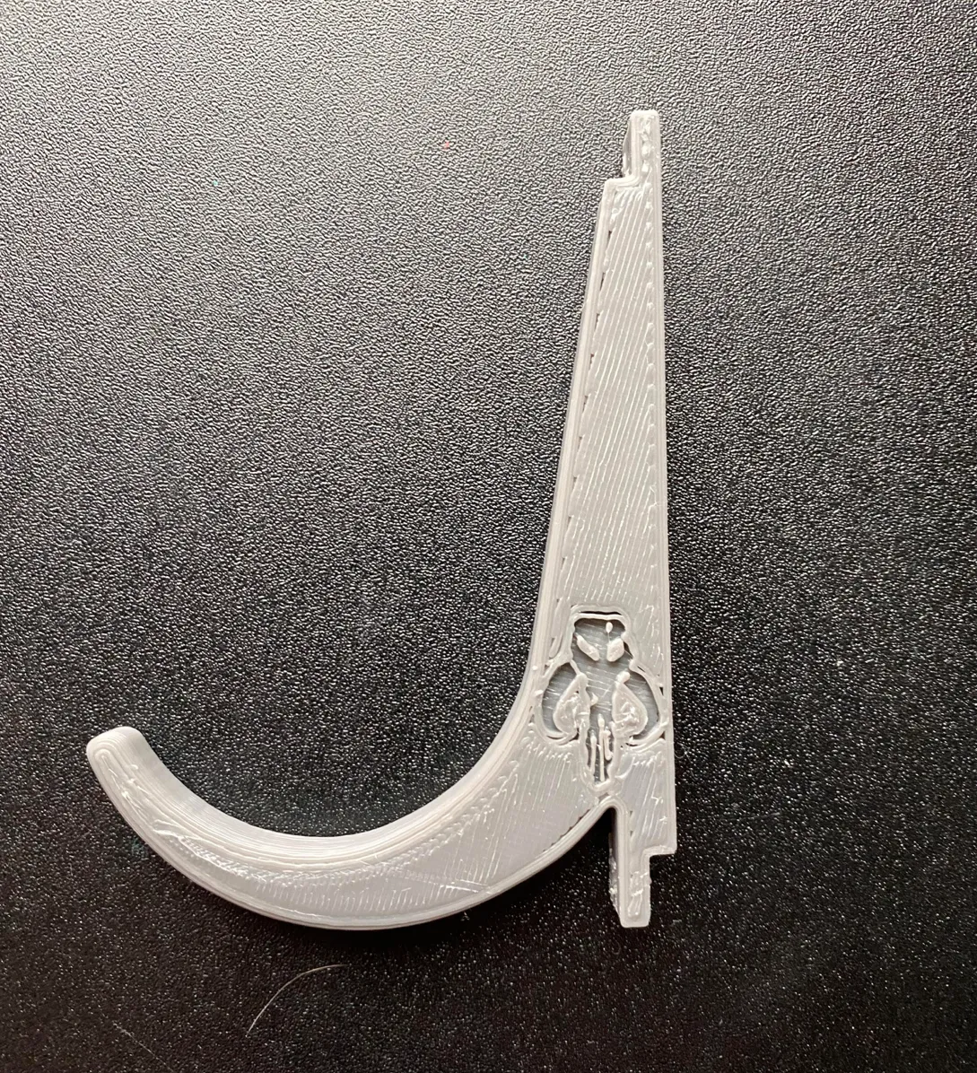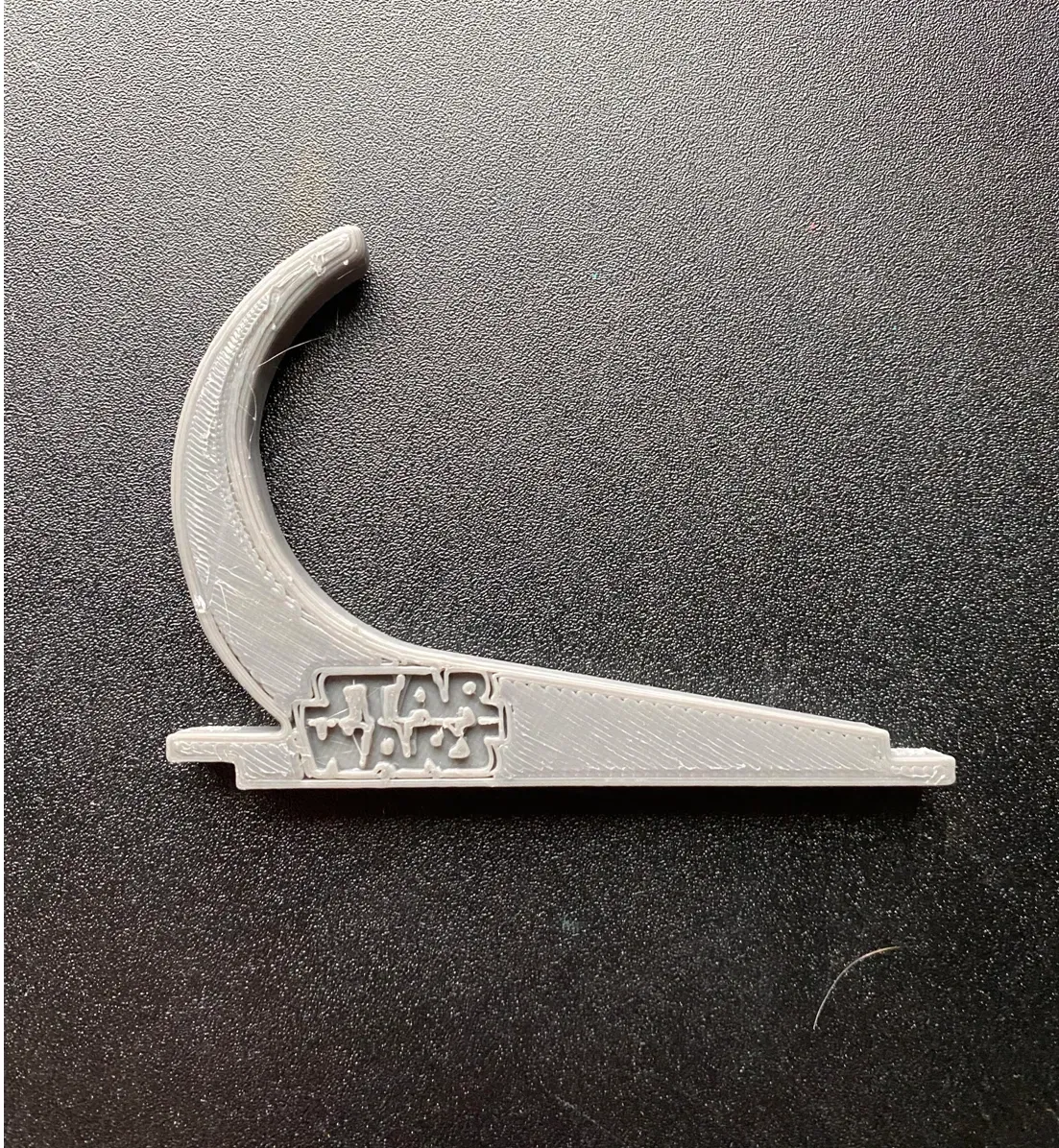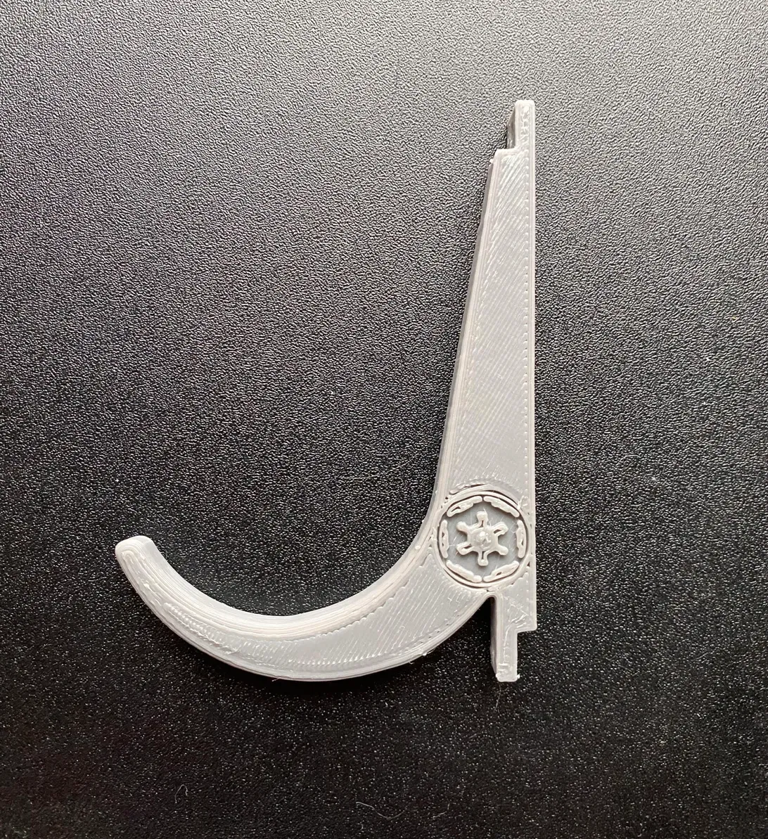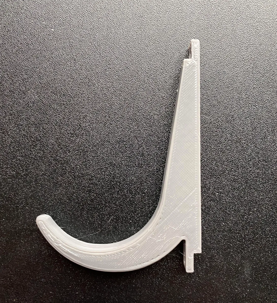 Hồi tui thấy cái Móc đèn kiếm của sideeffect001 á, tui nghĩ nó sẽ hợp lý cho nhu cầu của tui lắm. Xong rồi tui in ra thì thấy có cái logo "B" ở bên hông, nên tui bỏ vô Tinkercad xoá cái B đó đi, rồi tui đi xa hơn nữa bằng cách thêm mấy cái chỉnh sửa của riêng tui.