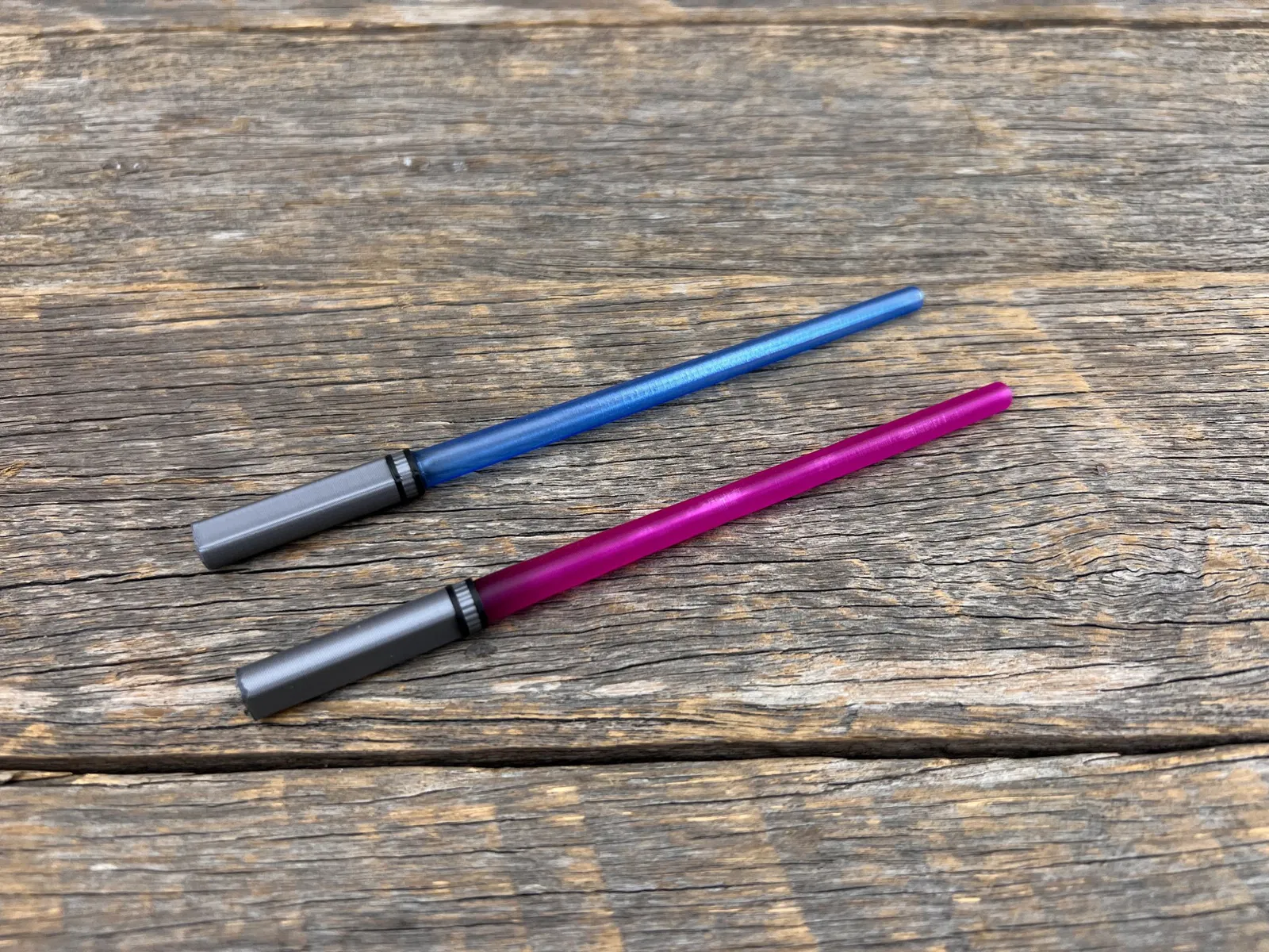 Có cái file Full Saber là cái cây màu tím trong ảnh đó nha, rồi tui làm thêm cái chuôi với lưỡi kiếm riêng nữa để mọi người có thể in lưỡi kiếm ở chế độ Vase Mode rồi ghép lại, cái cây màu xanh là tui in theo cách này đó.