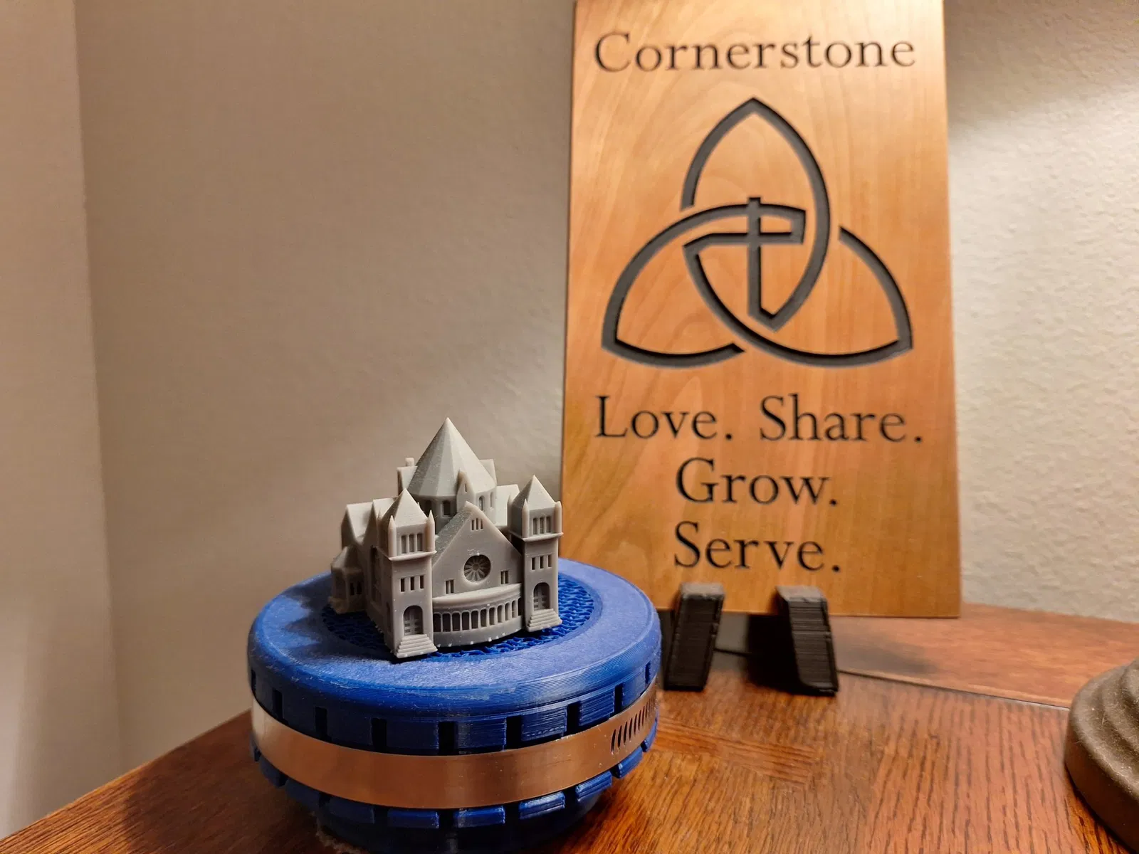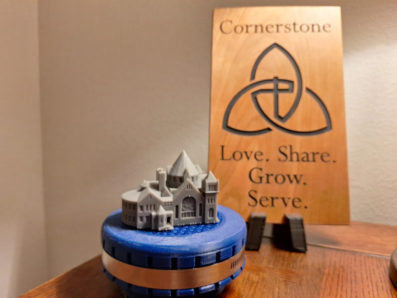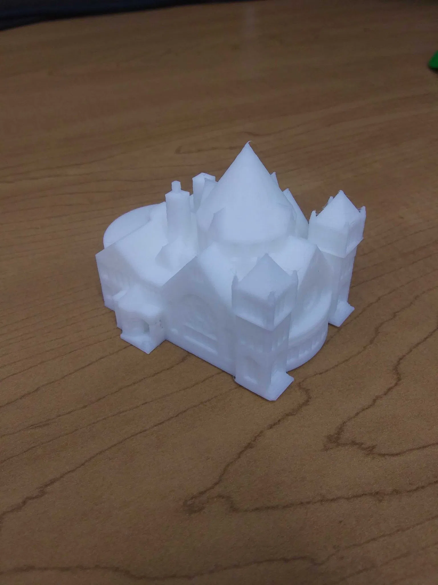 Mô hình chính xác của Nhà thờ Tin Lành Bellefield, được tạo ra cho một bộ cờ Monopoly tùy chỉnh. Đây chính là căn khách sạn trong bộ cờ đó, một mô hình kiến trúc độc đáo.
