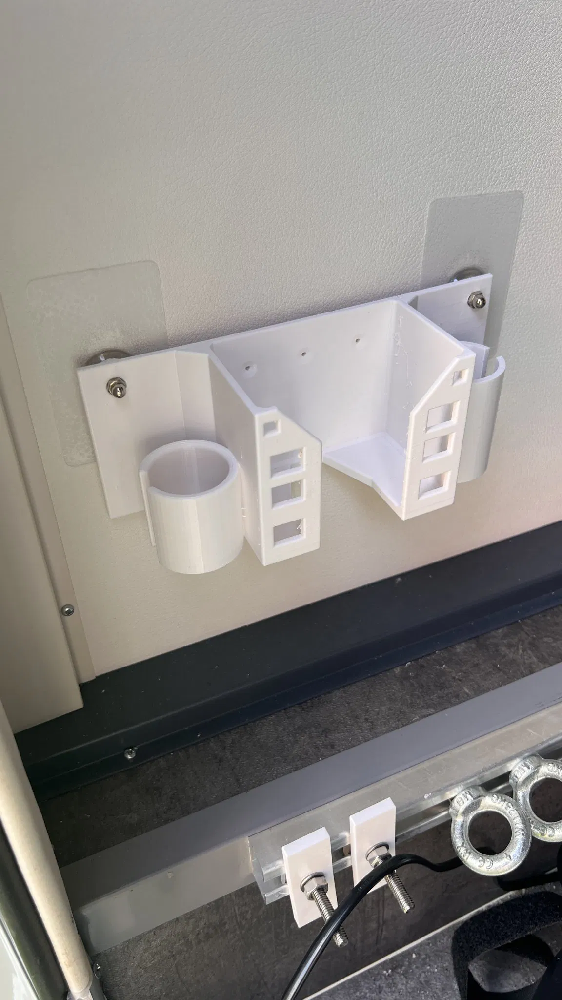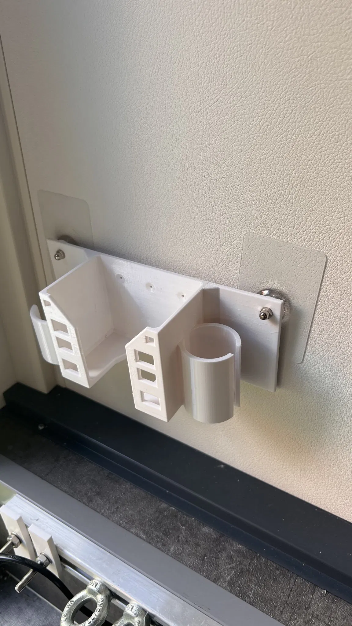 Tôi đã thêm hai chốt ở bên cạnh, để tôi có thể gắn giá đỡ trong xe nhà di động của mình bằng hai đinh vít dán.