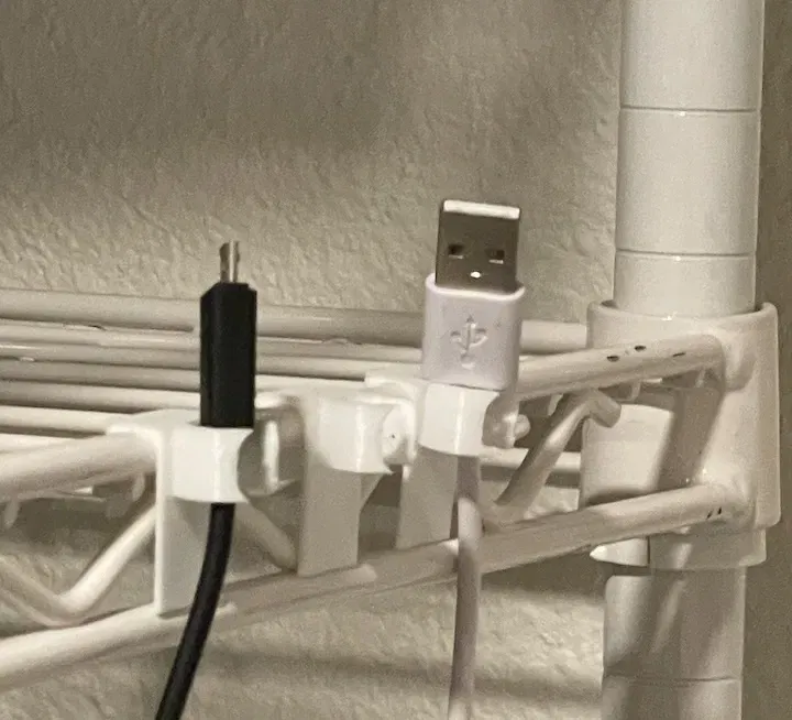 Snap these on to the side railing of your wire shelving units to keep wires organized and tidy.
