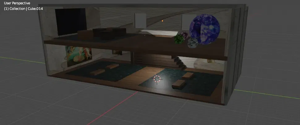 This model depicts an art museum. The bottom floor contains paintings from the Renaissance period, while on the top floor visitors can find an installation and a video wall hosting various short educational films.