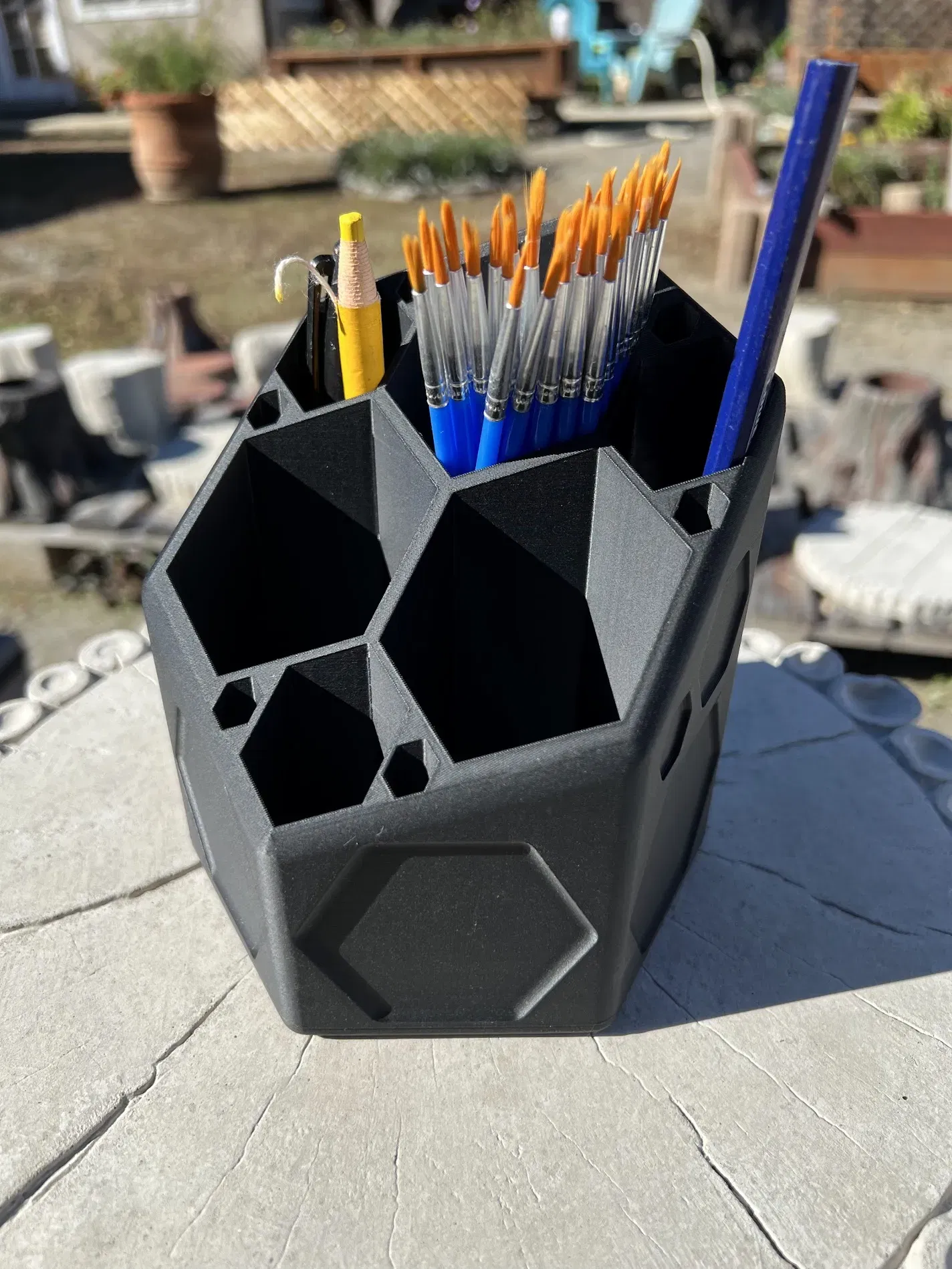 Tui làm cái holder bút hình tổ ong cho bả xã tui á... dĩ nhiên là bạn có thể để bất cứ thứ gì bạn muốn nha… -Tony