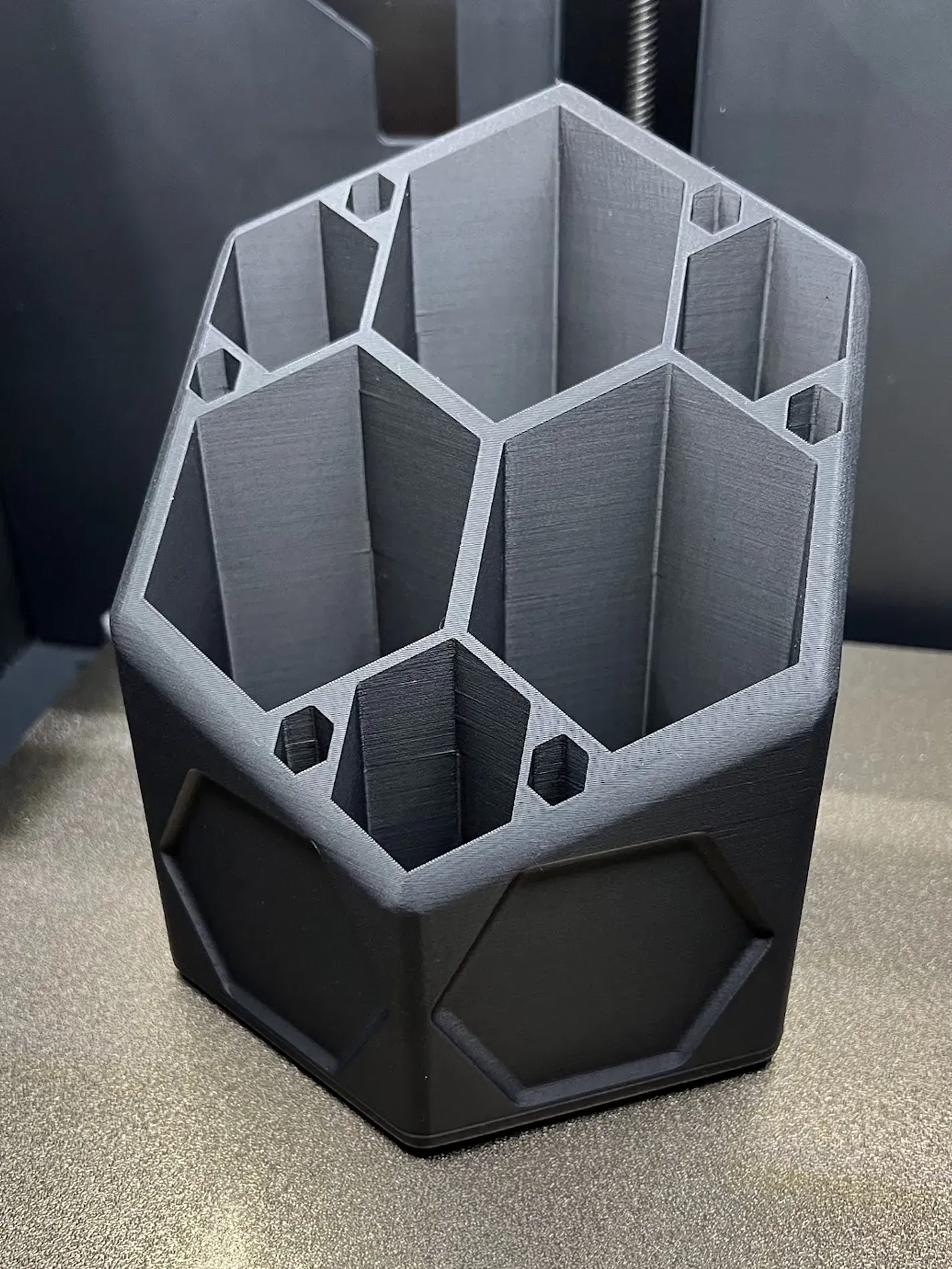 Tui thiết kế cái kệ bút hình tổ ong cho bà xã tui á, bả mê mẩn mấy thứ hình tổ ong luôn! Cái này bạn có thể để bút hoặc bất cứ vật dụng nhỏ nào khác lên bàn.