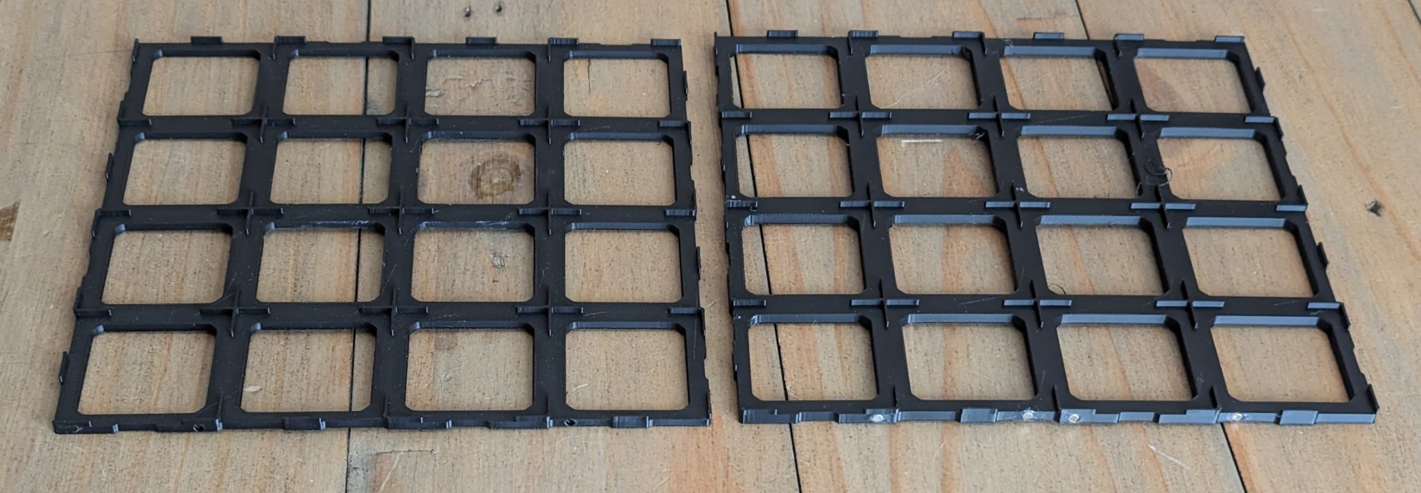 Nam châm được ép vào, nhưng nên dùng keo để đảm bảo nam châm không bị bung ra. Tùy thuộc vào mặt của lưới, một số lỗ có đường kính lớn hơn một chút và có thể bị bung ra khi sử dụng.