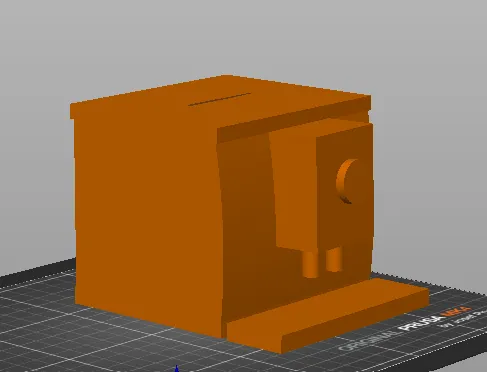 Heo đất hình máy pha cà phê, bạn có thể dùng để tiết kiệm tiền mua cà phê hoặc một máy pha cà phê mới. Sản phẩm được in thành nhiều bộ phận và cần lắp ráp. Lưu ý: có thể hơi quá khổ một chút. Hoàn thiện bằng Prusa Slicer.