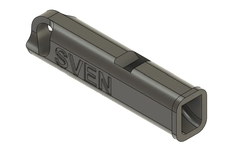 Cái còi nhỏ xinh này có thể dễ dàng gắn vào chùm chìa khóa của bạn. Đặc biệt, hai bên hông còi có bề mặt phẳng, rất tiện để bạn in tên hay khắc chữ lên đó, tạo nên phong cách riêng.