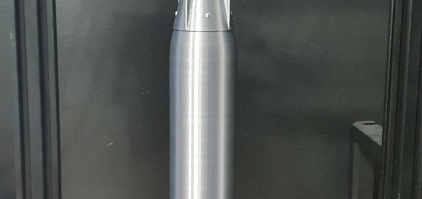 The ring on the fins is printed separately due to the overhangs. A small bit of superglue works perfectly for me. I've then primed, painted and matte clear coated it. Also a hair dryer on the fins to soften them and bend them out of shape helps look damaged.