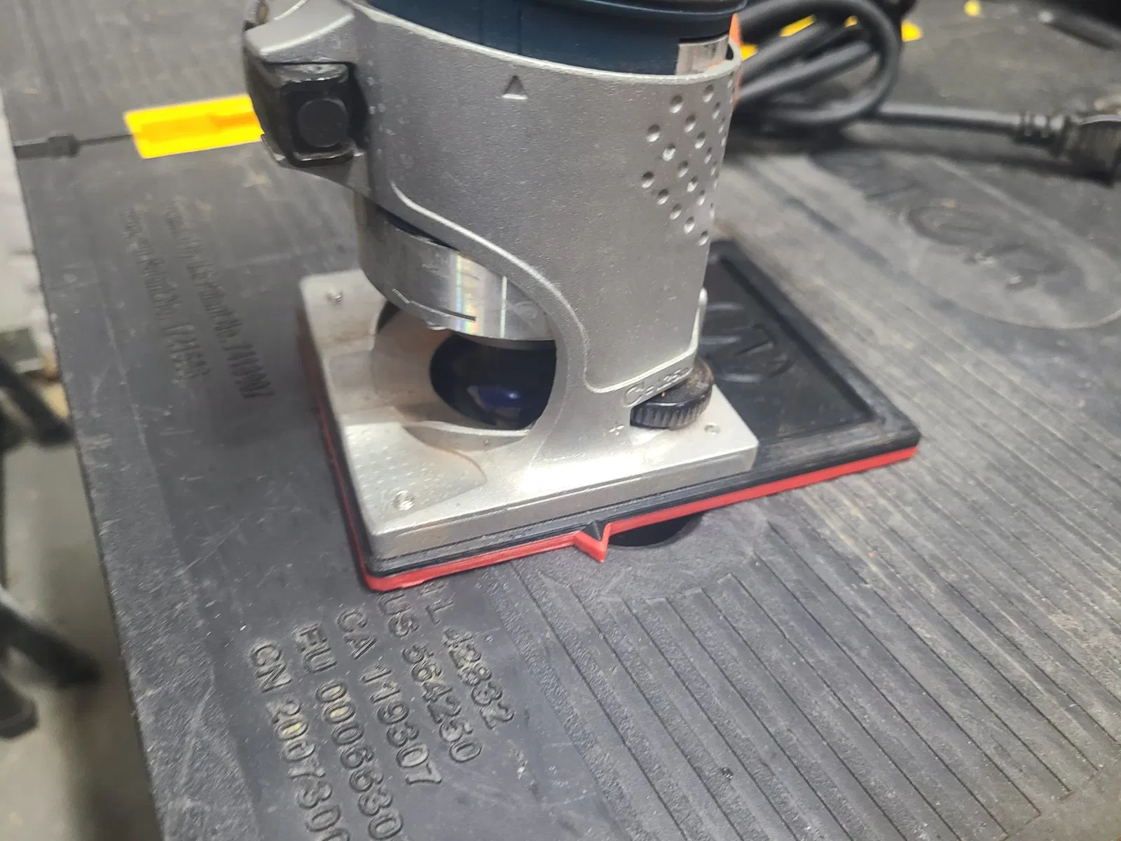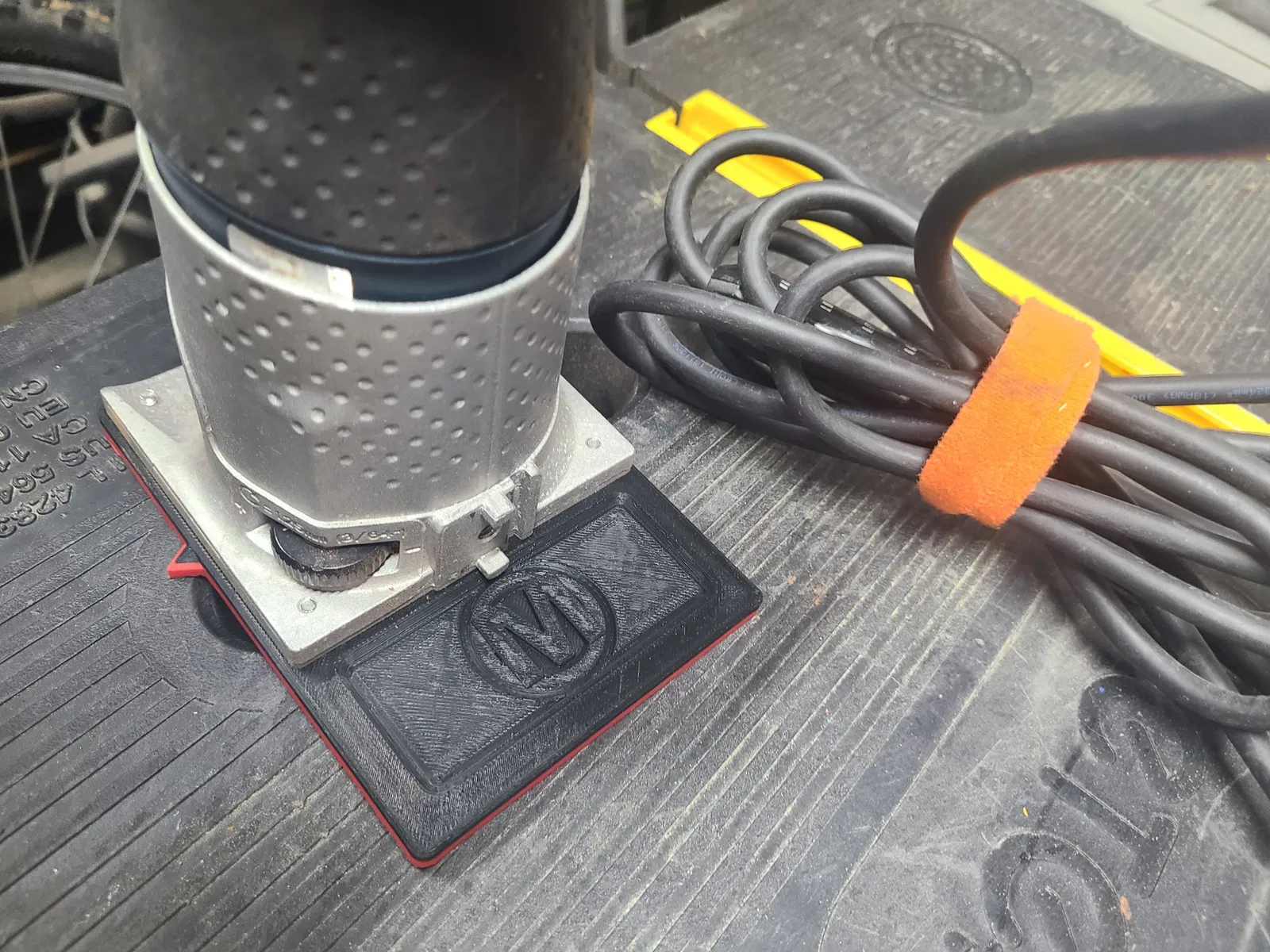 Phần đế mở rộng giúp tăng cường sự ổn định khi sử dụng máy router Bosch Colt. Chất liệu in có thể là ABS hoặc các loại nhựa in 3D khác.