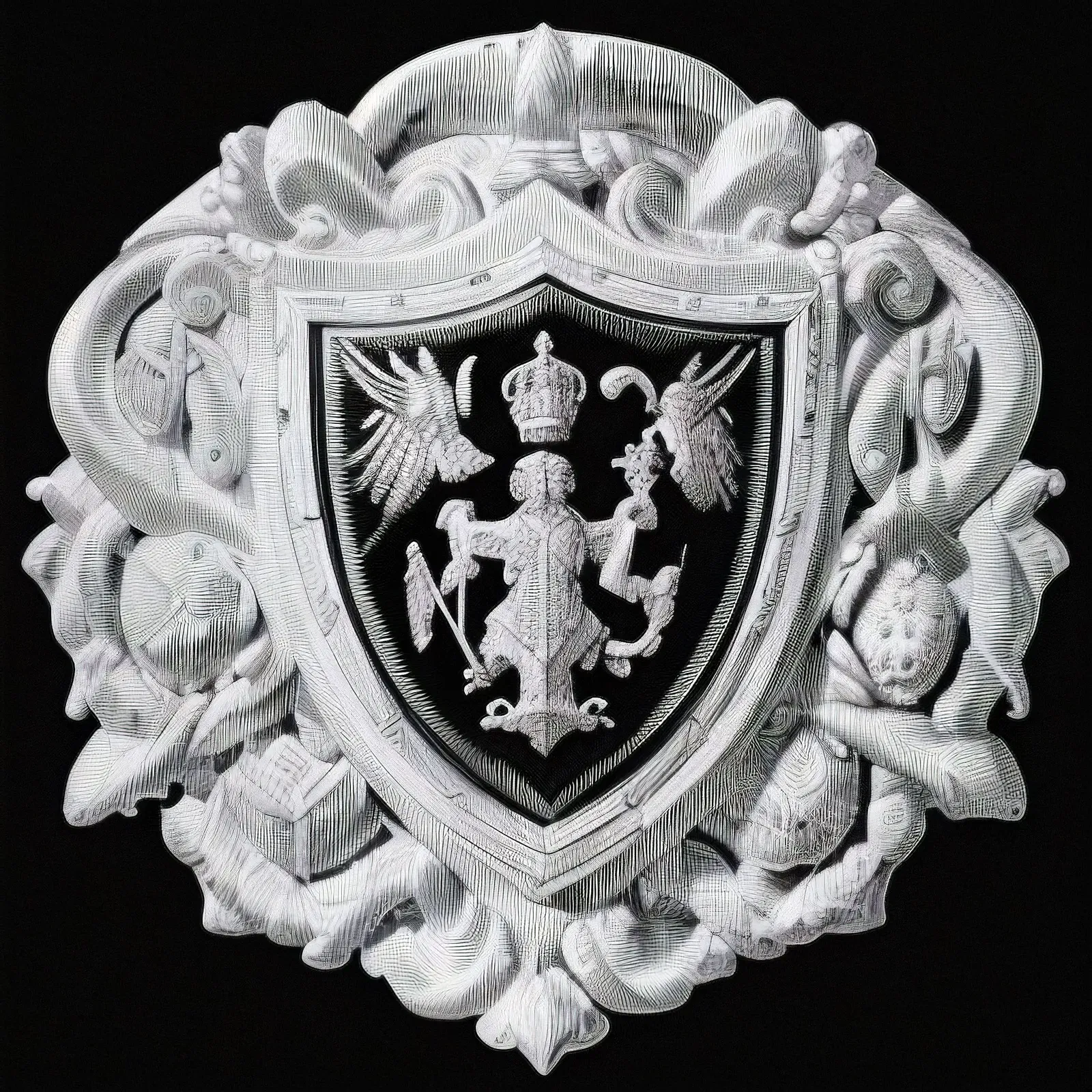 absolutereality_v181.safetensors [463d6a9fe8] - Prompt: <lora:engraving (1):1> engraving, black and white, armory shield.