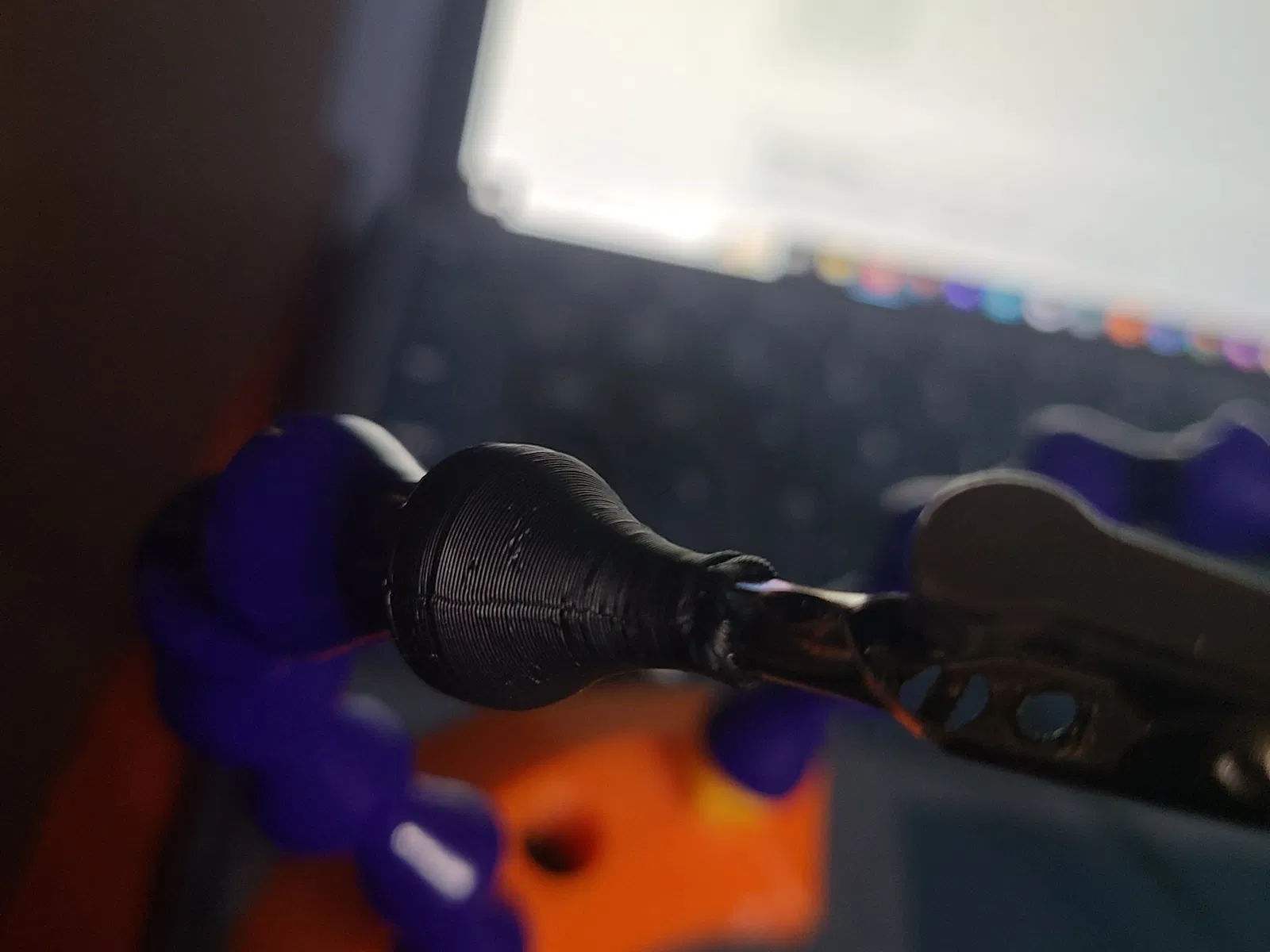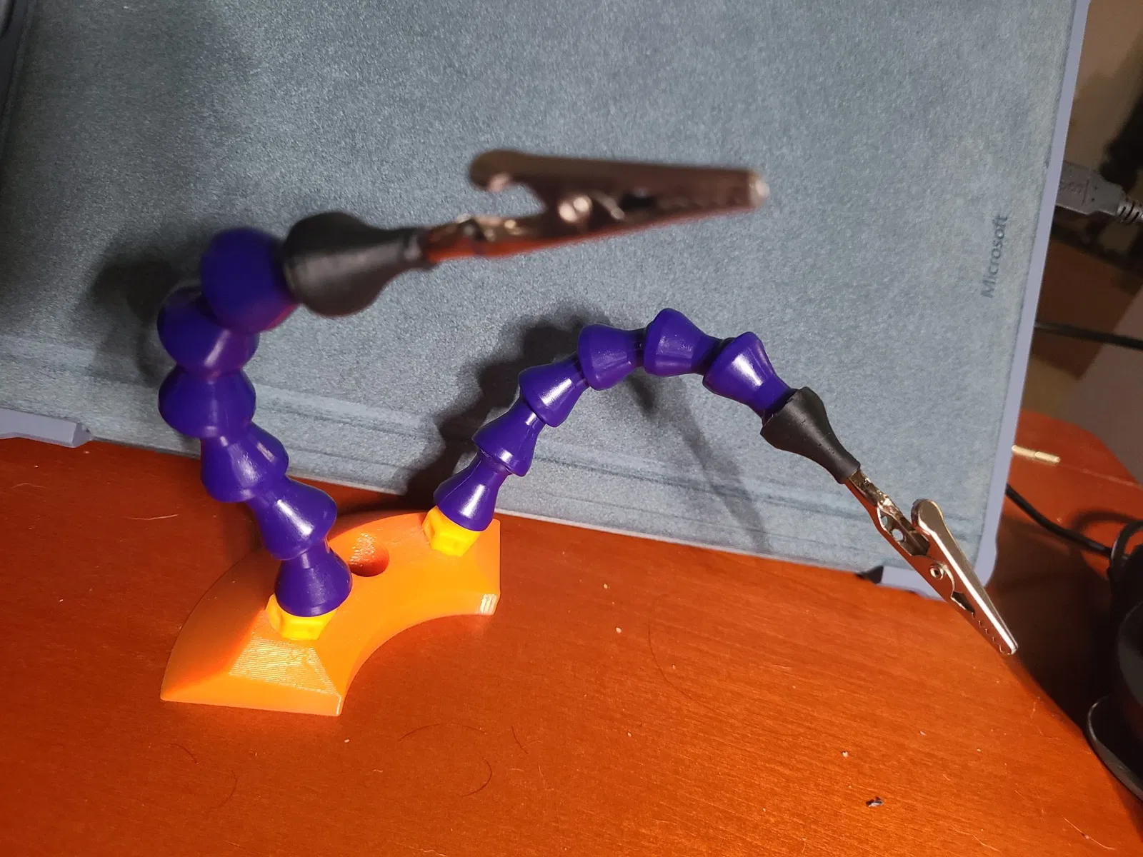 Tôi in cái của tôi bằng ABS cho nó cứng cáp. Cái khe để gắn kẹp cá sấu thì tui làm hơi khít, nên tôi có hơ nóng rồi xoắn/nhấn nó vô chỗ.