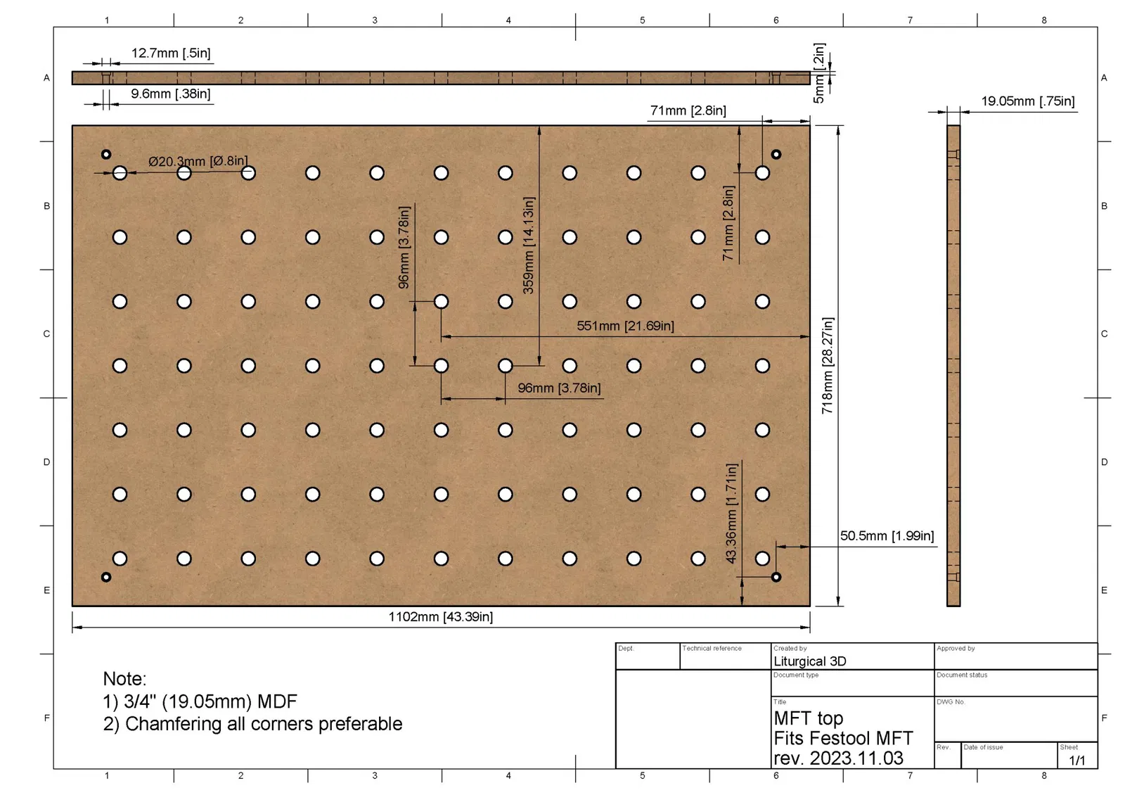 Dimensions & model to create your own MDF table which fits the Festool MFT/3 table.