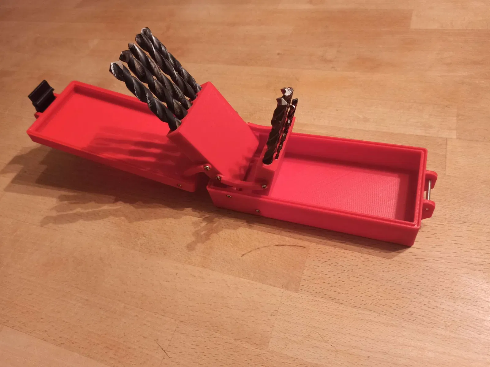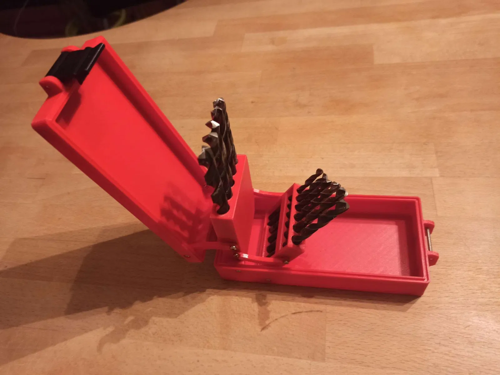 Tao cần một cái hộp nhỏ gọn hơn cho mấy mũi khoan của tao, nên tao thiết kế cái này, với mấy cái chốt dựa trên thiết kế của Whity's Rugged Box, và tao làm ngược cái mép trên của hộp để có bề mặt ngoài trơn tru.