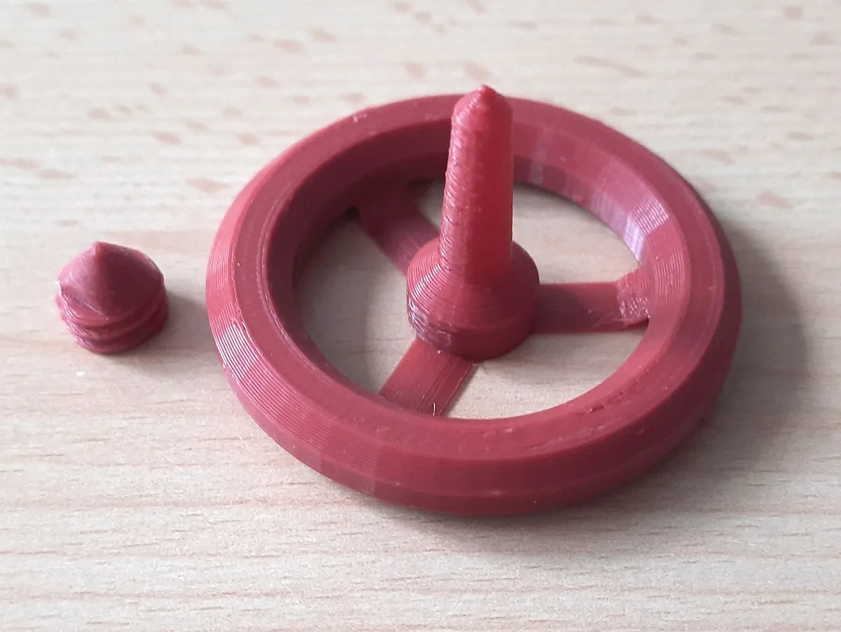 It's a spinning top optimized for a good runtime, but without the need for additional parts (like a ball bearing for the tip). My best run was two and a half minutes.
