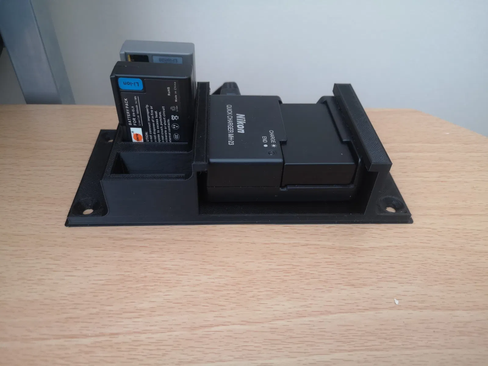 Được thiết kế để in mà không cần hỗ trợ (máy in của bạn cần có khả năng cầu nối tốt), giá đỡ này cho phép bạn gắn sạc và 3 viên pin vào bàn làm việc của bạn (để chúng không bị rơi ra nếu bạn kéo dây!)