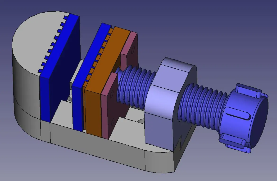 I needed a bigger vise on my desk. Couldn't find one so I made this. printed in PET-G except for the pads (TPU). The vise and clamp are separate files as they are quite large. No support was needed for any parts. The jaw is designed to be changable for other clamping needs. To attach the top and bottom of the desk clamp, I used 10-32 screws (tapped the “TopClamp”) for the vise, I used 6-32 screws to hold the “fixed” piece to the base (I tapped the four holes on the “fixed” piece to assemble the vise and the desk clamp together, I use 8-32 screws (I tapped the “TopClamp”) 11/6/23 added soft Jaws ('C' and 'D") in TPU Please llok for the swivel accessory: https://www.f3d.vn/3d-model/91375-de-xoay-cho-may-kep-ban-co-chan-kep-ban