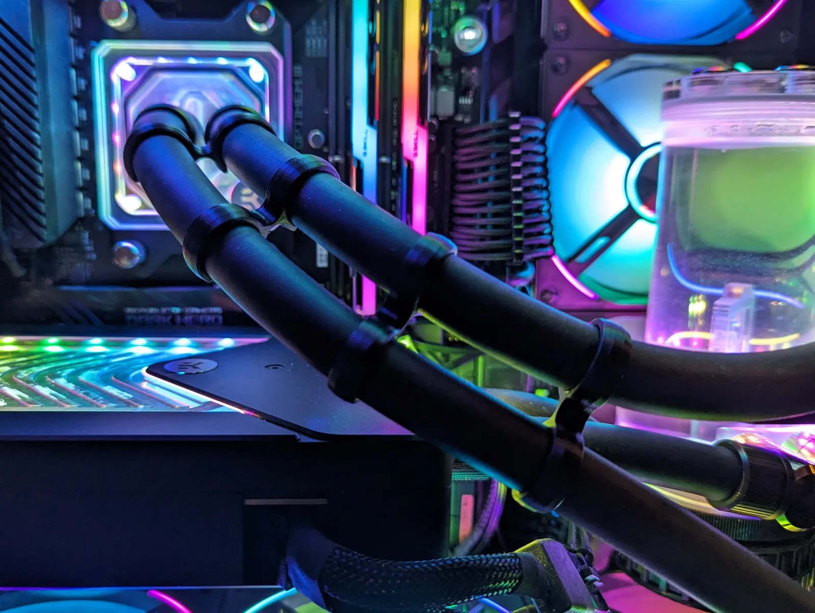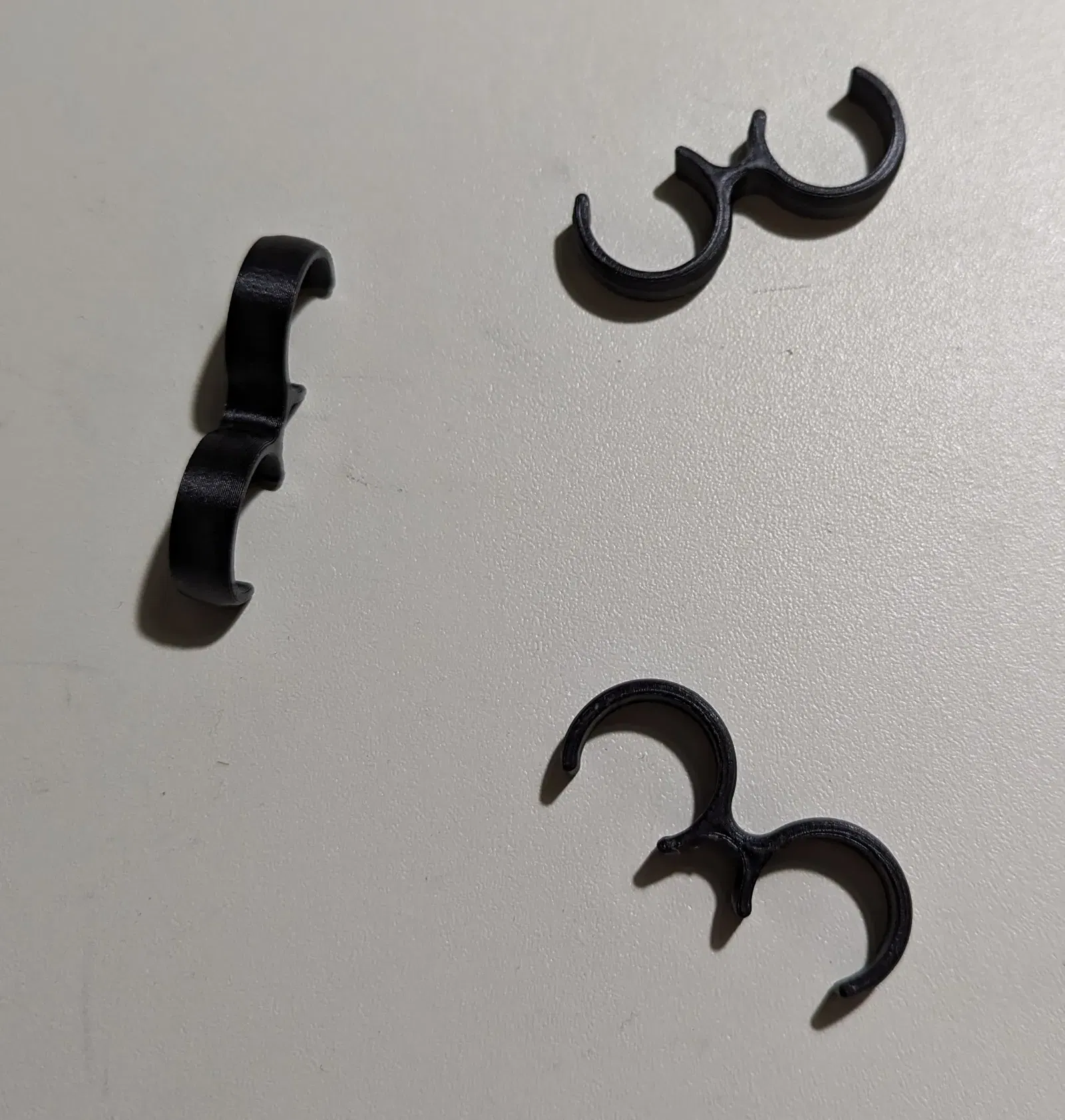 Vòng nước làm mát trong máy tính của tôi cần hai ống dẫn đến khối CPU kéo dài khá lâu, vì vậy tôi đã thiết kế những "cái lược" hoặc kẹp này để giữ chúng song song, và do đó trông gọn gàng hơn.