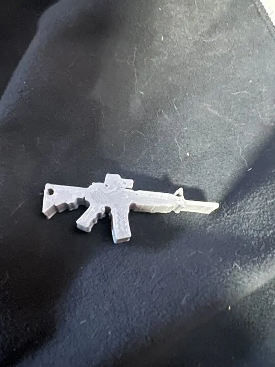Móc khóa AR15 có ống ngắm, được in thử nghiệm bằng PLA với độ dày 3mm. Khuyến khích sử dụng PLA+ hoặc ST-PLA để tăng độ bền cho sản phẩm.