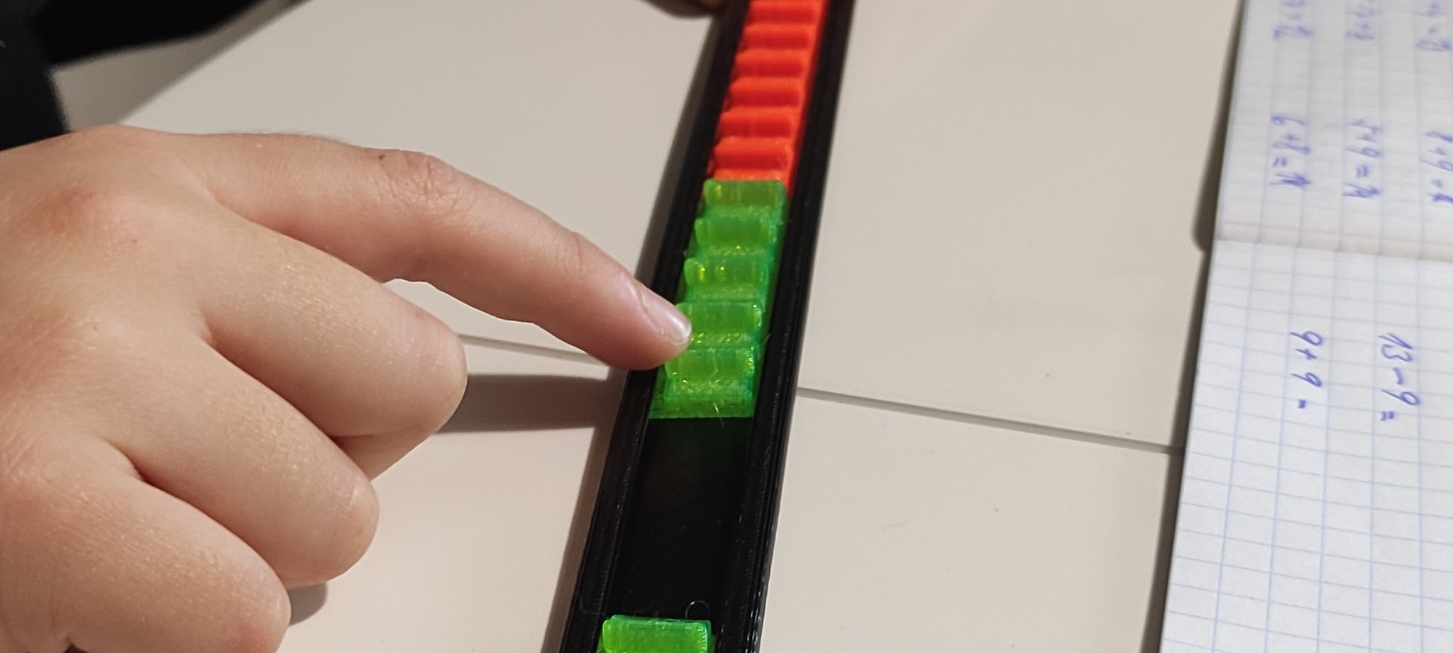 Tôi đã cố gắng tạo ra một bộ đếm giúp hiểu rõ hơn về việc vượt qua con số mười. Việc phân biệt không chỉ mười mà còn là năm bằng màu sắc lớp khác nhau ở tay cầm của mô hình điểm đã tỏ ra hiệu quả.
