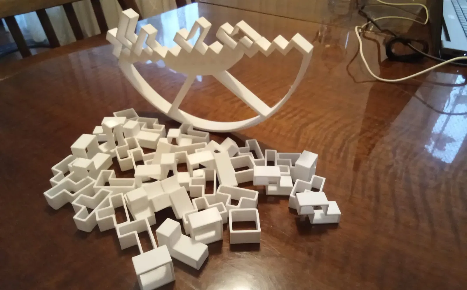 Mô hình tự làm dựa trên ý tưởng từ một video nào đó. Cái bập bênh được phát triển dựa trên thử nghiệm của hơn 5 người chơi và một vài ván game. G-code được tạo cho máy in 3D Prusa MINI (đủ số lượng khối lập phương cho một cái bập bênh).