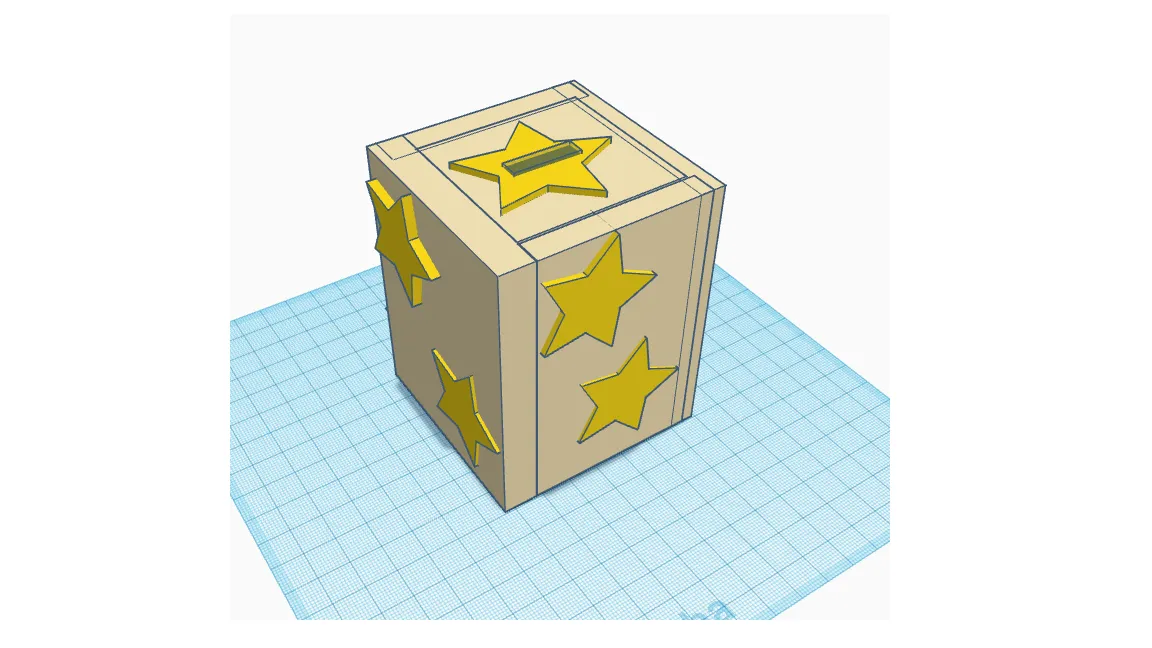 Mô hình hộp tiết kiệm hình chữ nhật độc đáo, trang trí với các họa tiết hình ngôi sao lấp lánh. Sản phẩm hoàn hảo để lưu giữ những đồng tiền tiết kiệm của bạn theo một cách thật ấn tượng và bắt mắt.