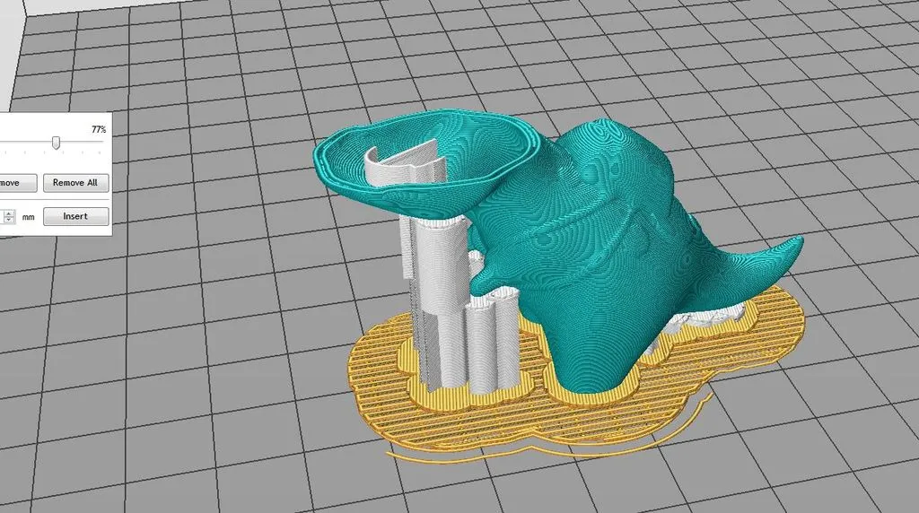 Do đầu nặng của phiên bản gốc, T-Rex sẽ nghiêng về phía trước. Tôi đã tạo ra một phiên bản rỗng một phần để giữ cho nó cân bằng. Tôi đã làm cho phần đầu phía trước (đầu) rỗng và in nó càng đặc càng tốt để làm cho phần dưới nặng hơn. Tôi cũng đã làm phẳng chân một chút để cải thiện sự cân bằng.