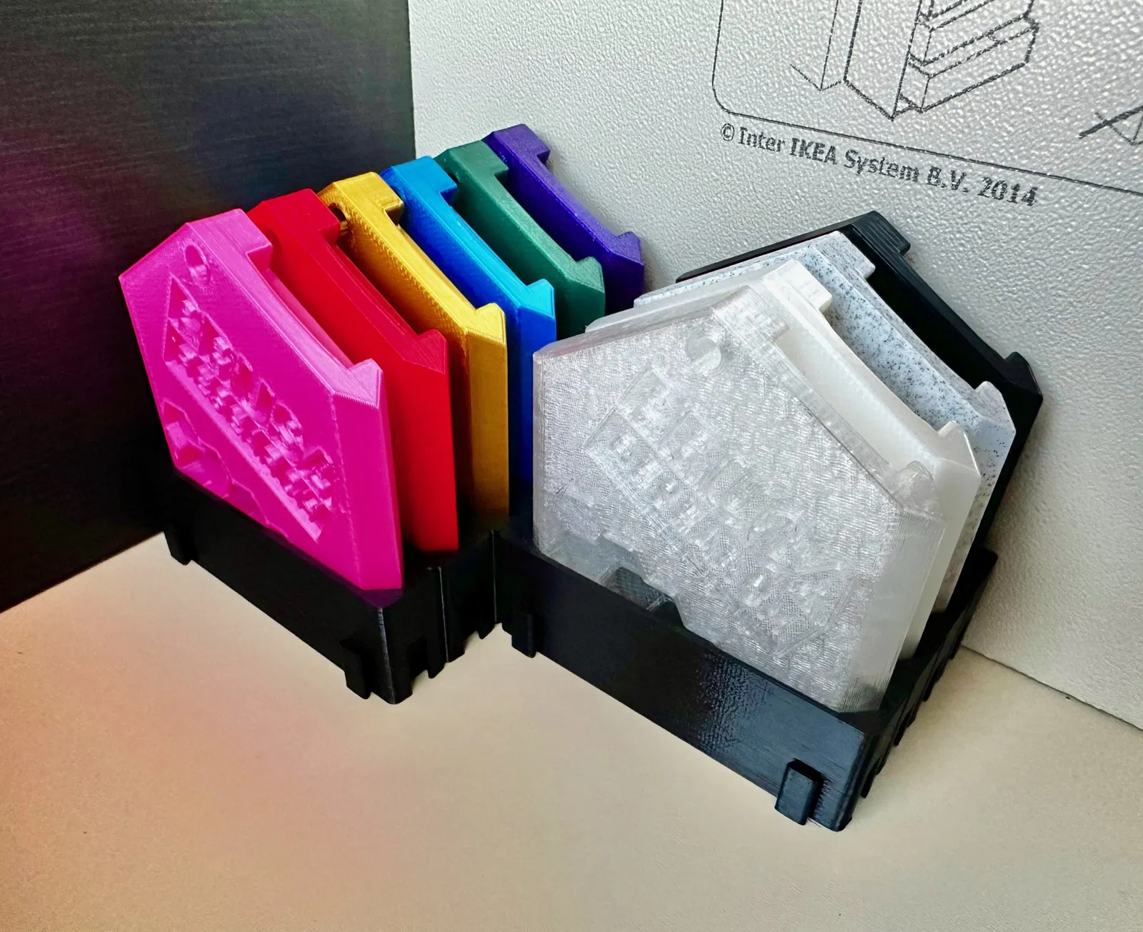 Inh ra một cái đế giữ cho mỗi mẫu Prusament mà bạn có, rồi ghép chúng lại với nhau như một trò chơi xếp hình theo kiểu nào bạn thích.