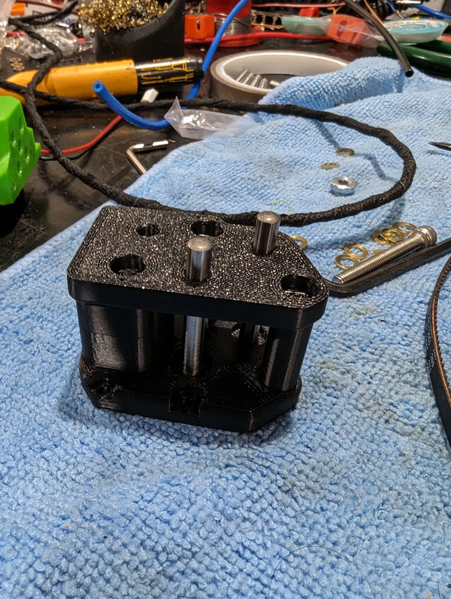 Tôi quyết định làm lại toàn bộ thiết kế với các chốt 40mm và giảm khoảng trống một chút xung quanh chúng để chúng được hỗ trợ sâu hơn vào các giá đỡ và loại bỏ bất kỳ độ chơi nào.