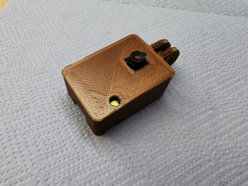 Đây là một cái đế gắn cho ESP32-CAM, ở trên nó có chỗ gắn mount GoPro. Ngoài ra, chỗ để gắn LED chiếu sáng cũng được khoét sẵn luôn.