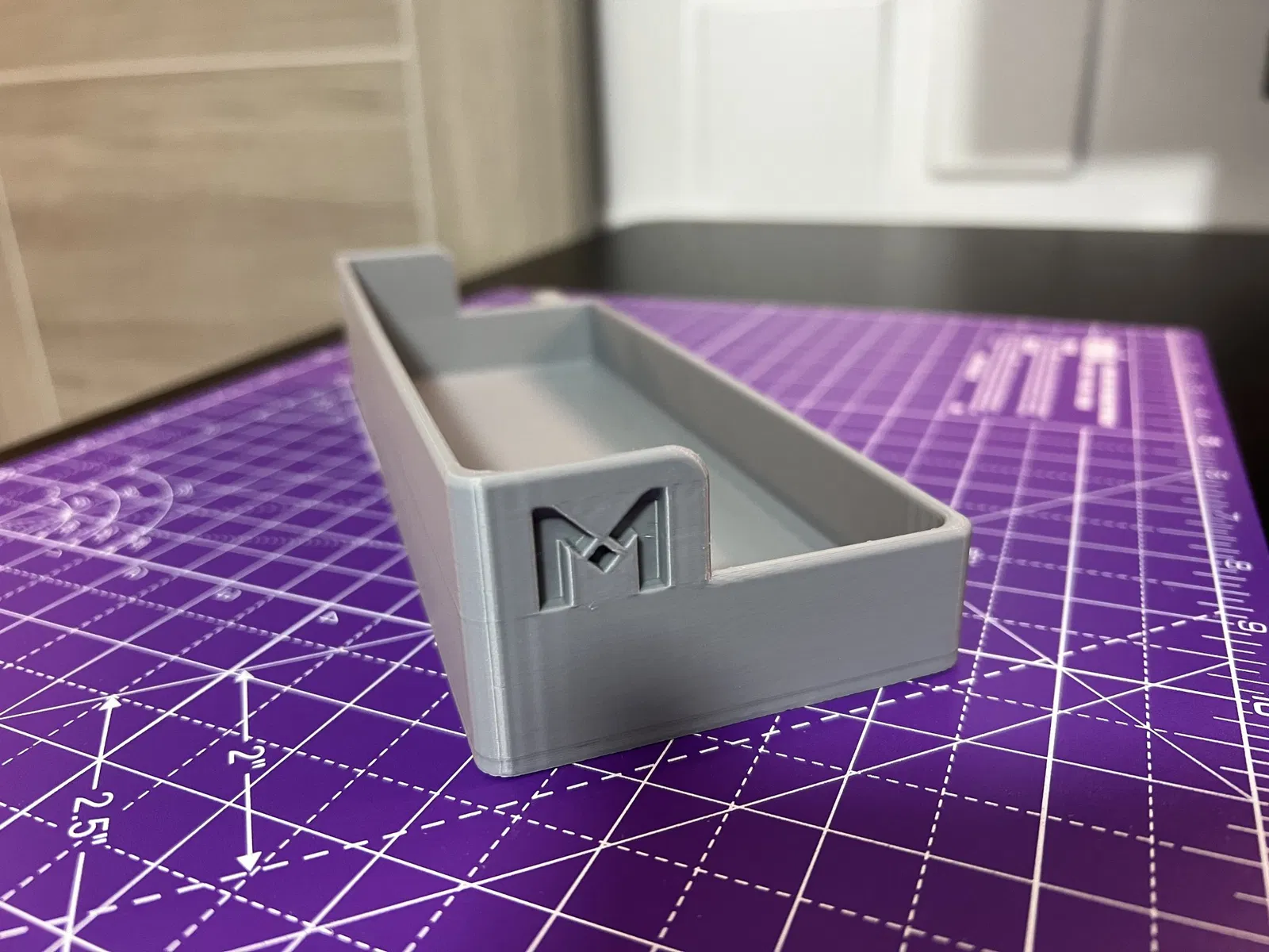 Hộp đựng rác được thiết kế lại cho AnkerMake M5C, với tường cao hơn, rộng hơn và thiết kế phía sau được cải thiện để vừa vặn tốt hơn. Bao gồm cả logo và kích thước chi tiết.
