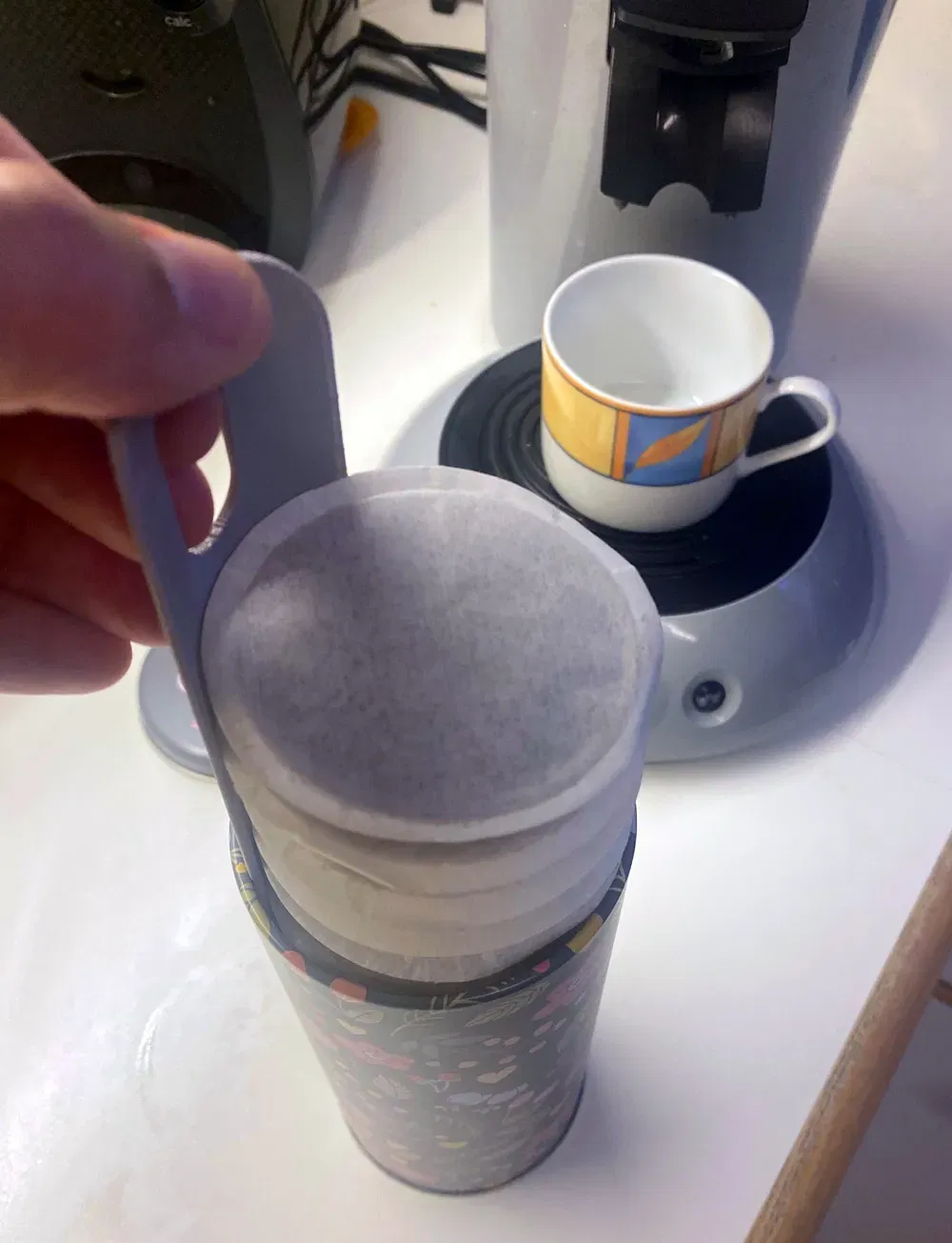 Chứa được tới 12 miếng lót Senseo. Đường kính đáy là 70mm. Không còn lộn xộn trong lon Senseo của bạn nữa. Để các miếng lót trượt ra mượt mà và ngăn nắp.