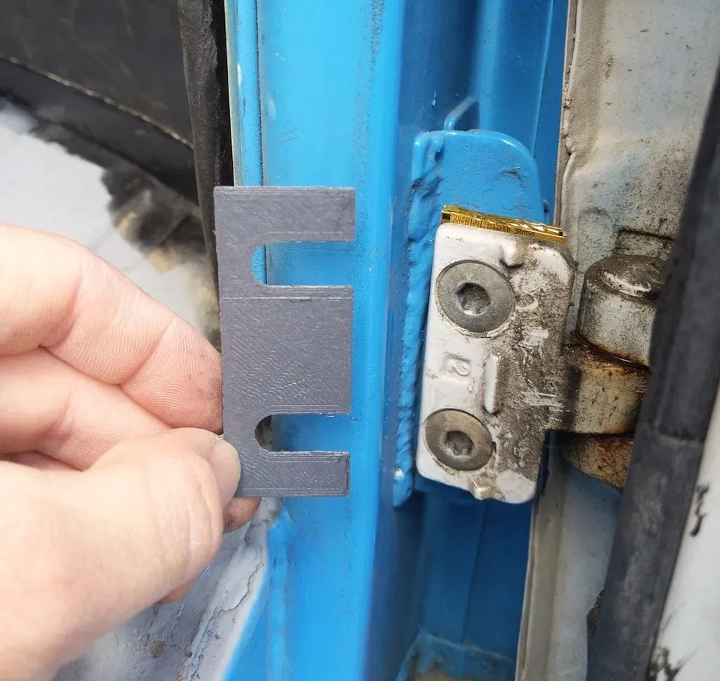 Giúp khắc phục cửa trước bị xệ. Tốt nhất là dùng cái này làm khuôn mẫu rồi cắt miếng đệm thật từ lon nhôm nha.