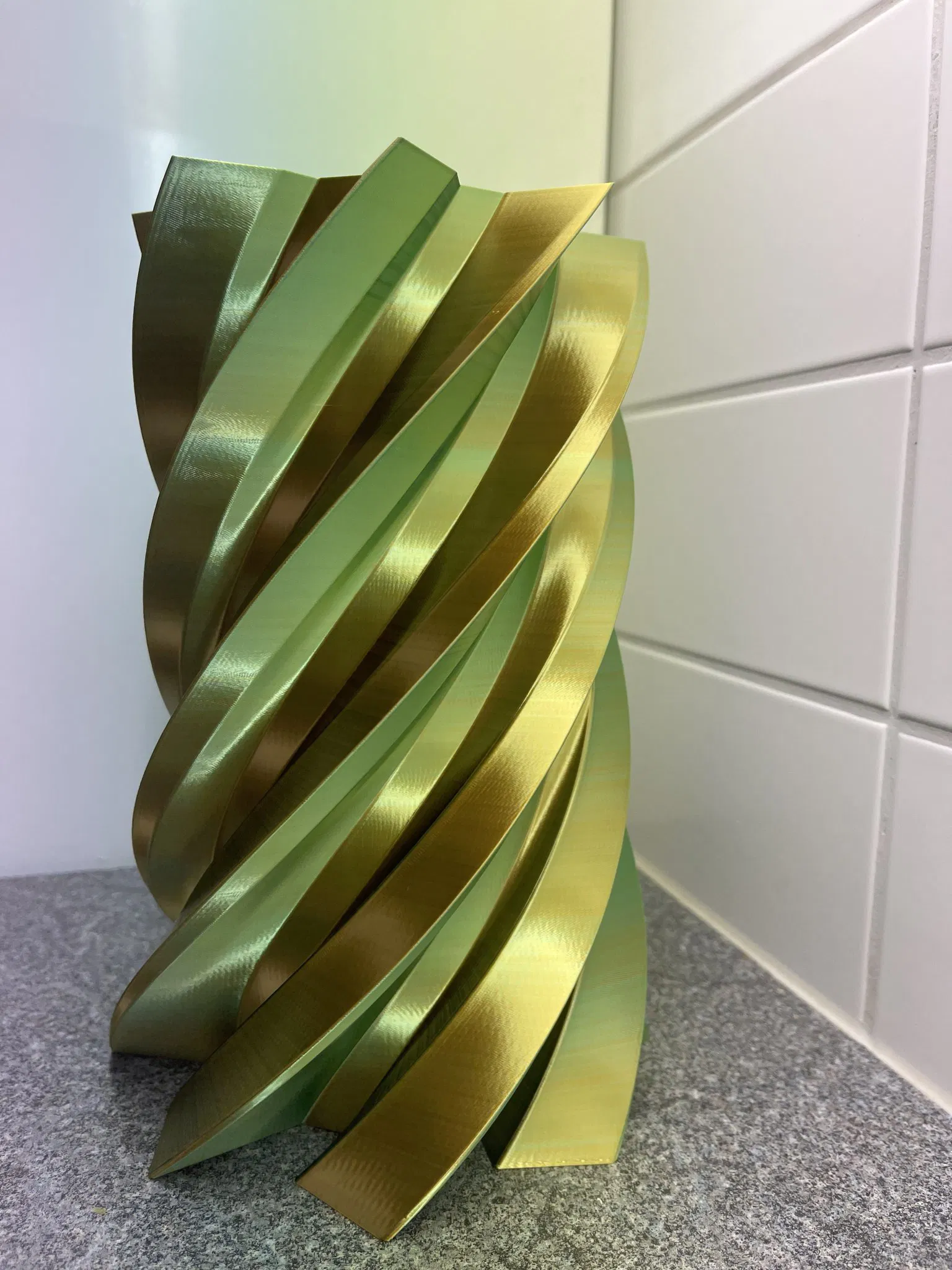 Tui cày mấy ngày mới ra được cái chậu hoa xoáy Vortex xịn sò này nè! Có bí kíp để chậu chống nước luôn nha. In bằng Bambu Lab X1C với sợi eSUN eSilk-PLA, nhớ để chế độ vase mode cho đẹp.