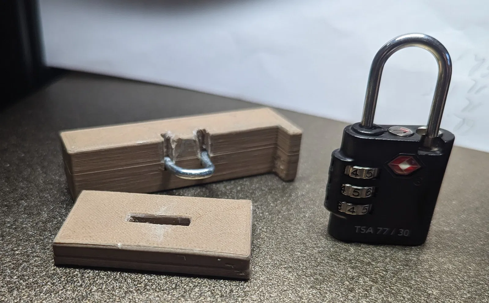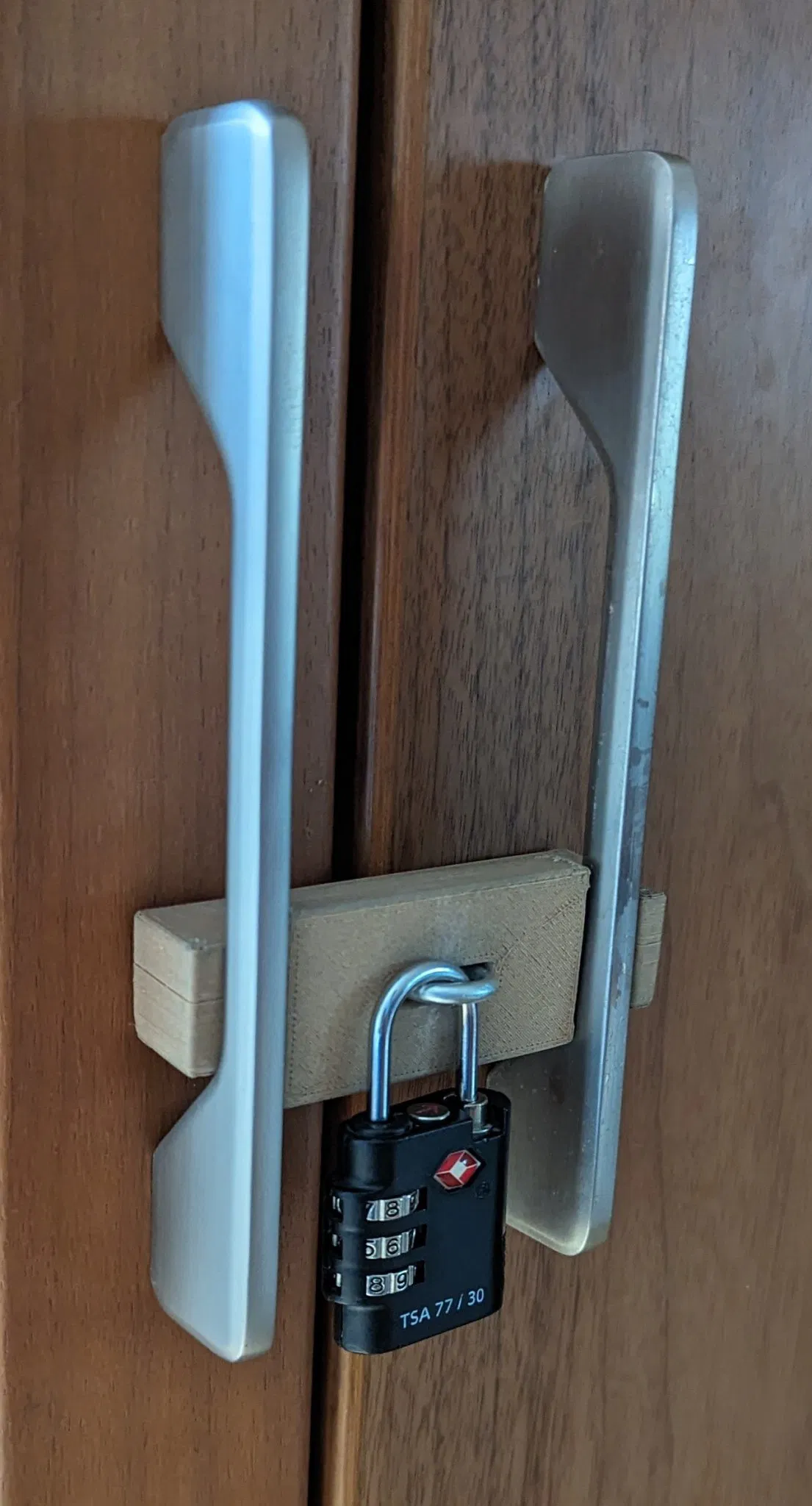 Chốt đơn giản cho tủ có hai cánh cửa mở ra hai hướng khác nhau. Tui có dùng thêm một miếng kim loại làm chốt khóa - miếng của tui hơi ngắn nên tui phải “tối ưu” cái bộ phận in 3D một chút...