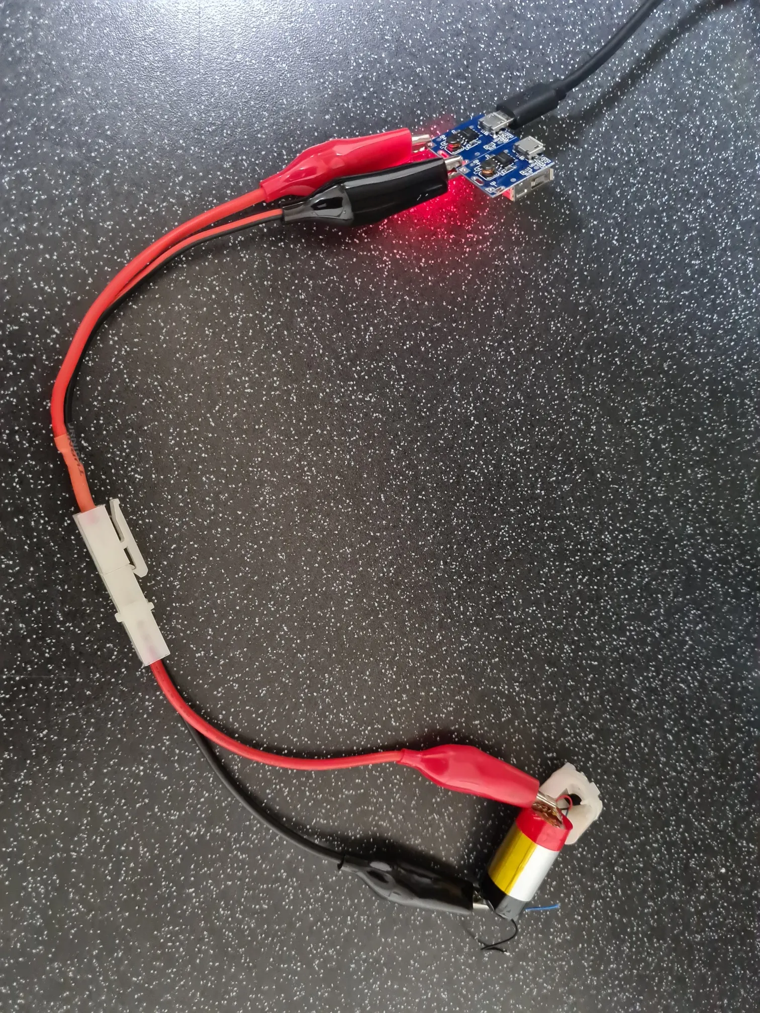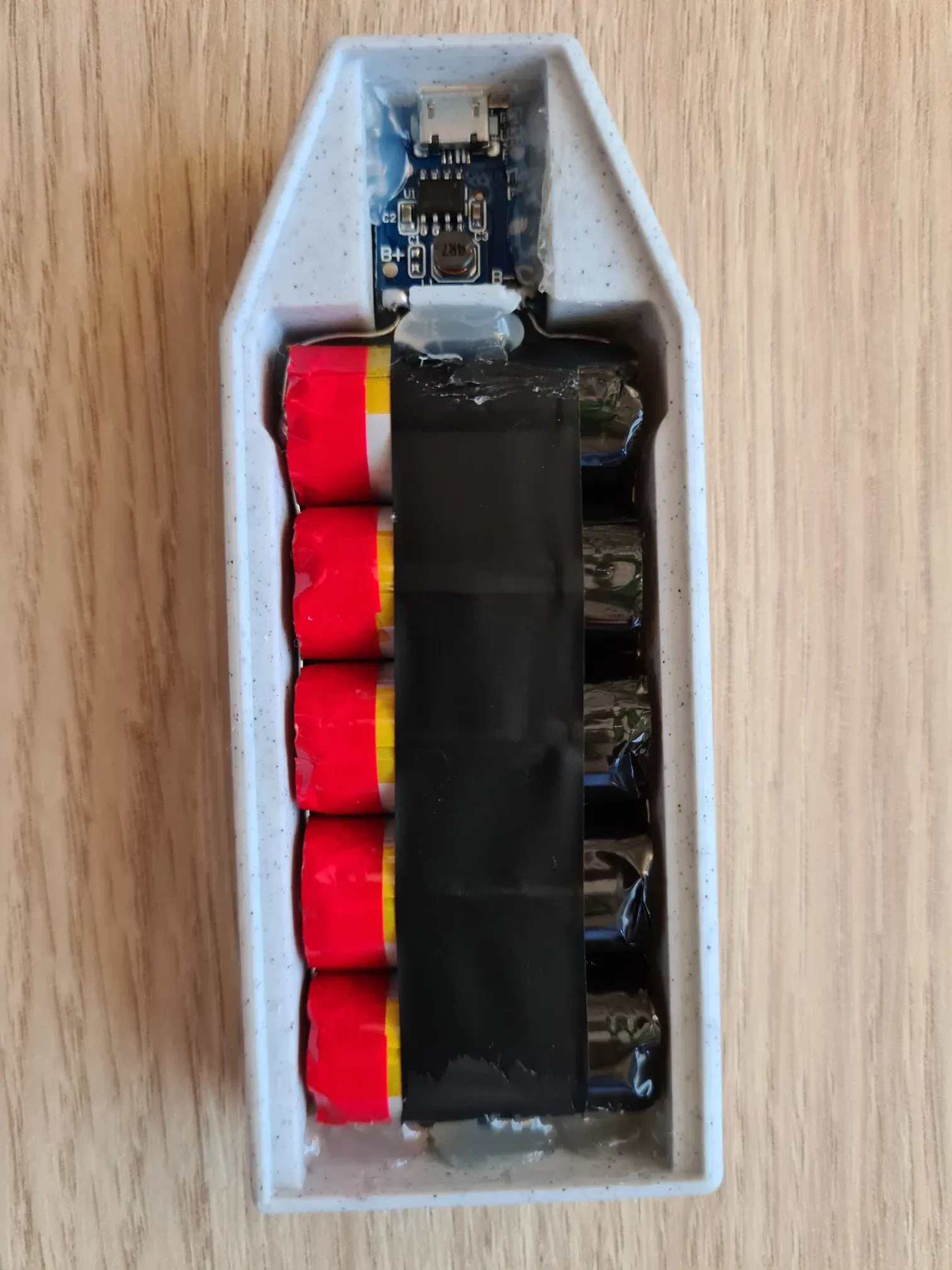 Nếu pin của bạn không có cái này, bạn có thể dùng mạch sạc cho cả sạc dự phòng để sạc từng pin một, có thể dùng kẹp cá sấu để dễ dàng hơn, hoặc hàn trực tiếp. [Hình cuối là ví dụ về việc này!] . . . Sau khi mọi thứ được lắp ráp xong, tôi dùng keo nến để đảm bảo không có gì bị xê dịch.