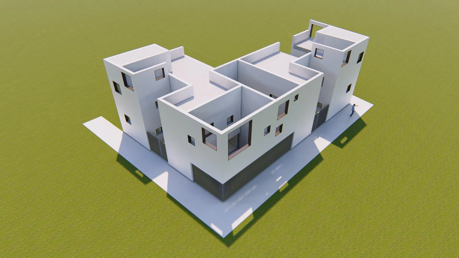 Mô hình dự án 2 căn nhà ở riêng lẻ, được hoàn thành với tỷ lệ 1:200. Tác phẩm của các kiến trúc sư Javier Peña Alcalde và José Moreno Ferre, đây là một bản sao thu nhỏ chi tiết của dự án kiến trúc nhà ở.