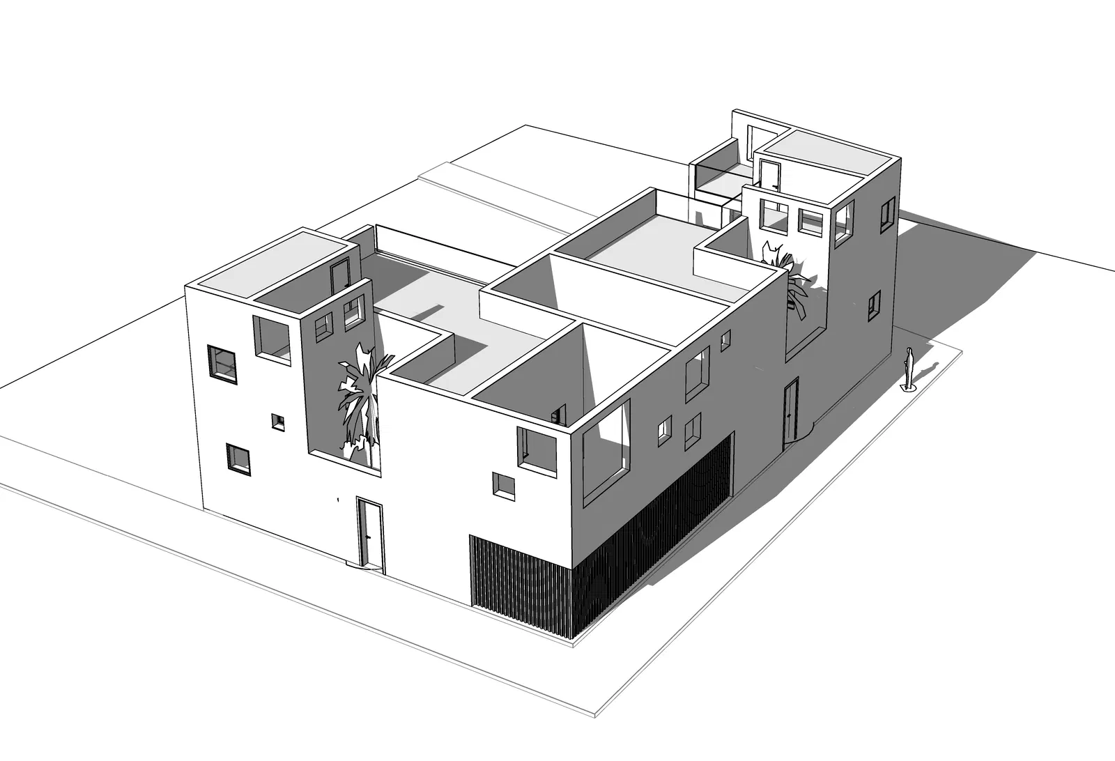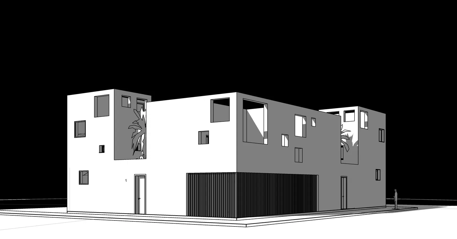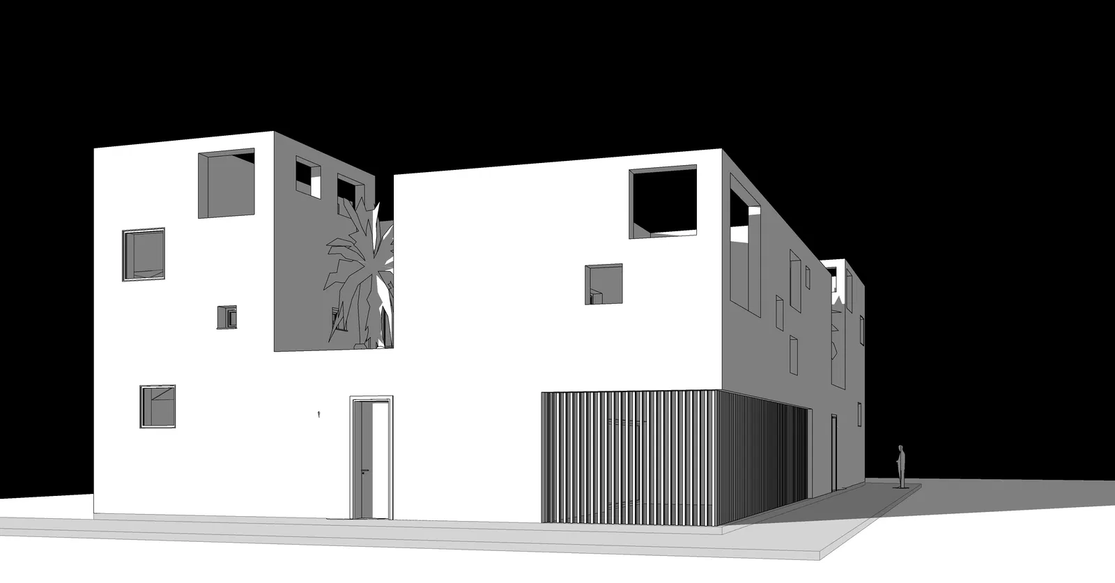 Dự án 2 căn nhà ở riêng lẻ (đã hoàn thành). Kiến trúc sư: Javier Peña Alcalde và José Moreno Ferre. Mô hình tỷ lệ 1:200