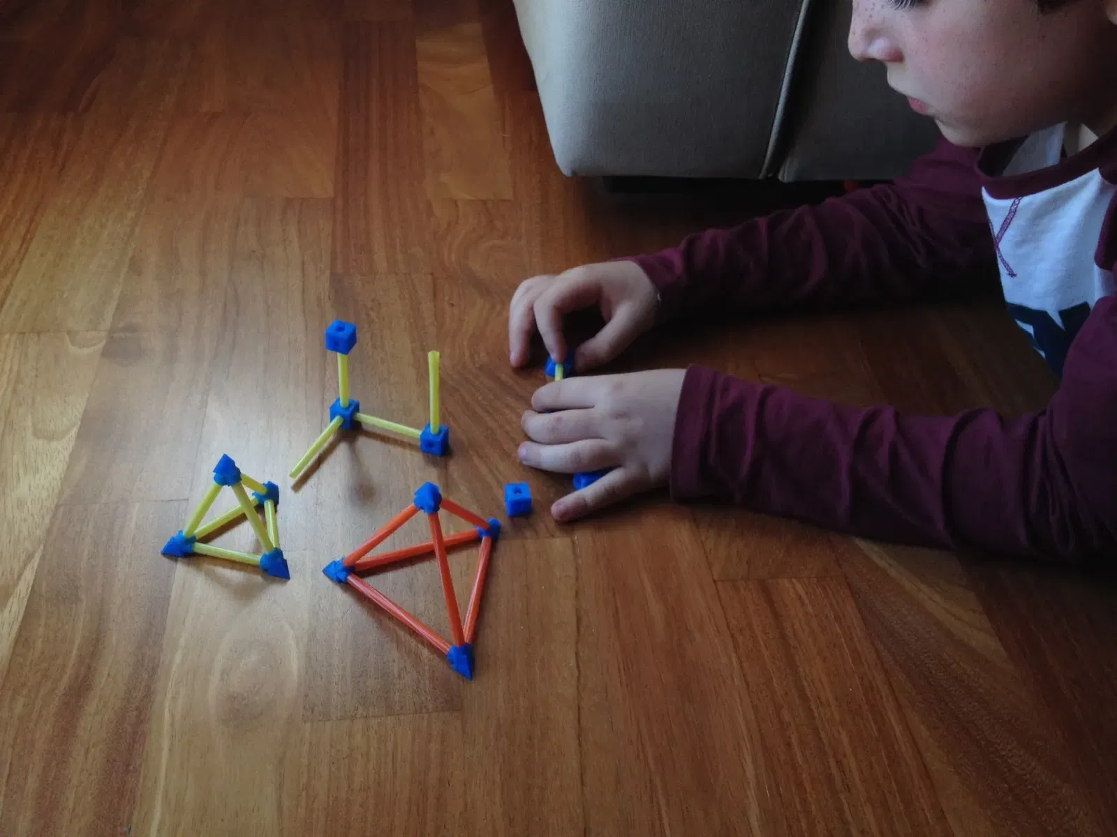 Bộ đỉnh đa diện đều này dùng để lắp ráp với ống hút 5mm, giúp các bé vừa chơi vừa học về hình học. Có hướng dẫn số lượng in cho hình tứ diện, lập phương và mười hai mặt.