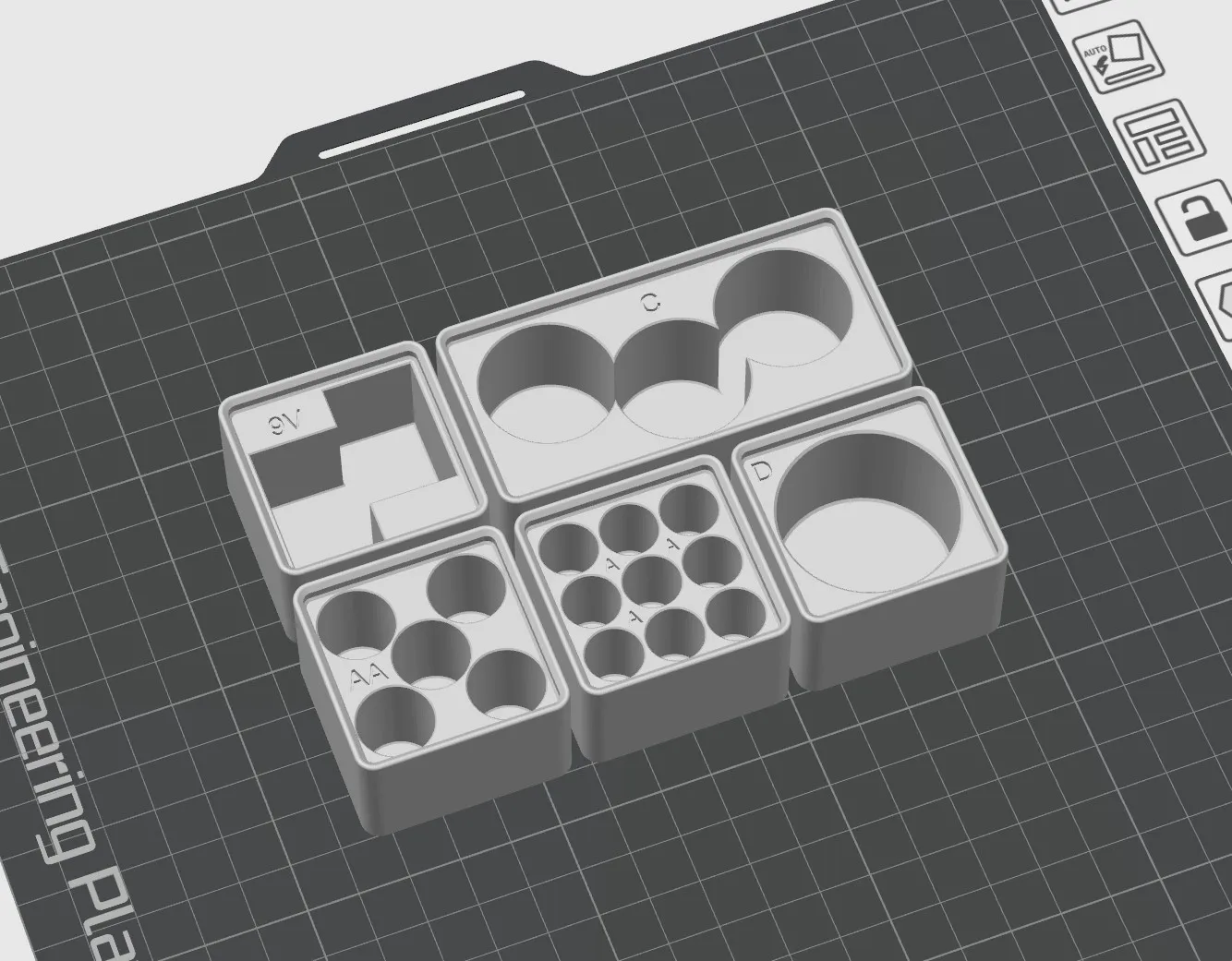 Chỉnh sửa lại thiết kế gốc của @knmorgan để tích hợp nam châm 6x2mm ép khít, giúp giữ pin chắc chắn trong các module Gridfinity. Phiên bản này tối ưu hóa cho việc sử dụng nam châm, mang lại sự tiện lợi và ổn định cho không gian làm việc của bạn.