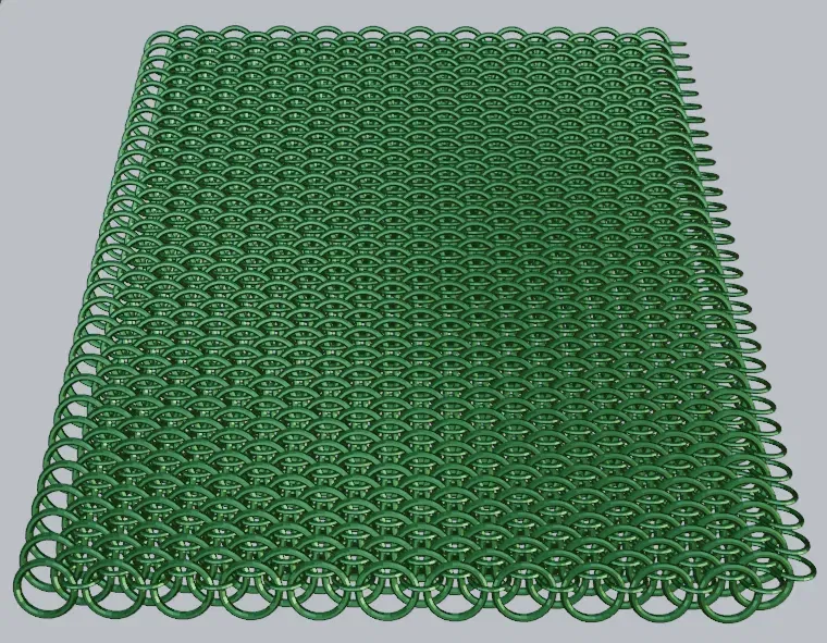 Mô hình Vảy Rồng Chainmail, kiểu dệt với các yếu tố định hướng mạnh mẽ tạo hiệu ứng vảy. Thích hợp cho cosplay. Có thể kết hợp các mảnh lớn lại với nhau dễ dàng. Bản in thử nghiệm hiện có sẵn.