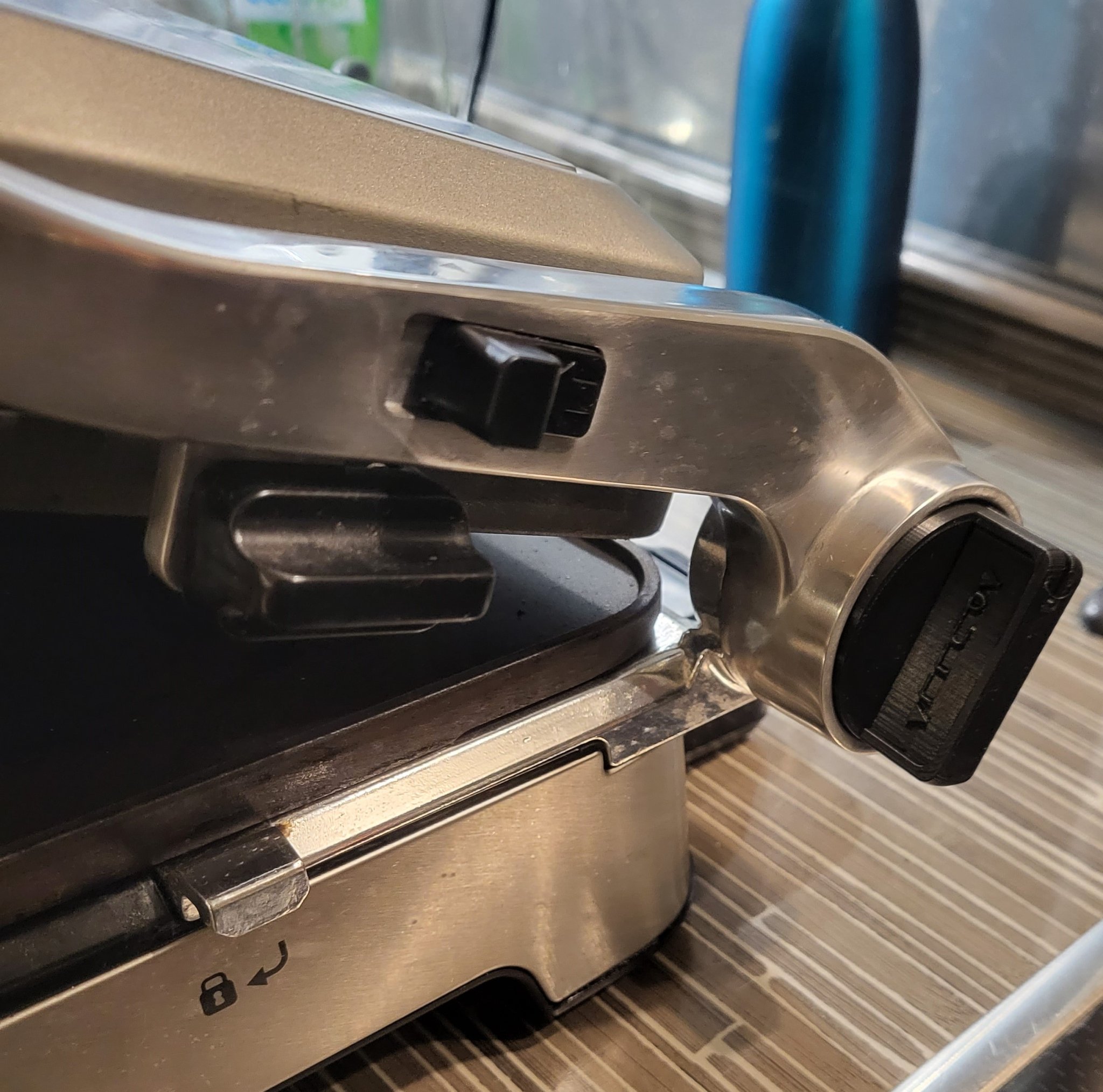 Der originale Feststellknopf des De'Longhi CGH1030D Grills hat eine bekannte Schwachstelle: Die kleinen Ecken des Rastmechanismus nutzen sich mit der Zeit ab ("werden dull") oder die Schraubdome im Inneren brechen. Das Ergebnis: Die Arretierung für die Grillplatten rastet nicht mehr ein, und der Grill kann nicht mehr in verschiedenen Positionen (z.B. halb offen) fixiert werden.