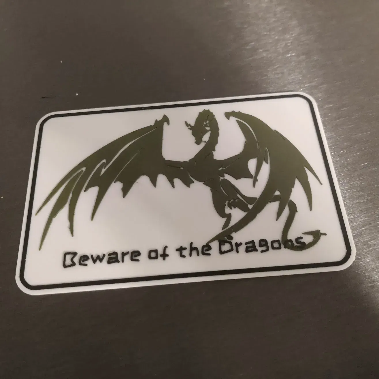 Cẩn thận nha mấy huynh đệ, rồng nó quẩn quanh đó! Mẫu này là một tấm biển cảnh báo, được thiết kế để nhắc nhở mọi người về sự hiện diện của rồng. Ảnh rồng gốc từ Etsy.