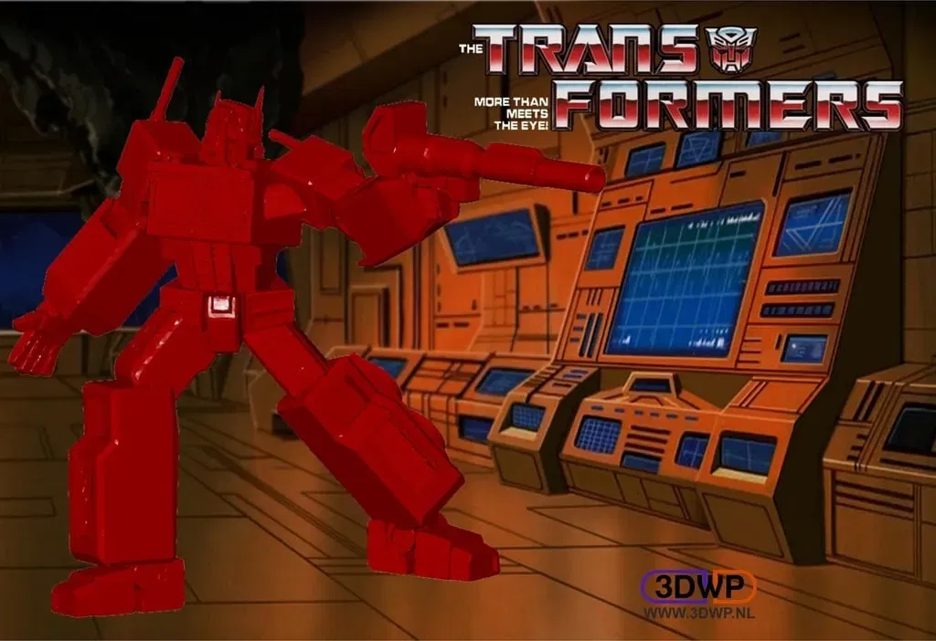 Tôi đã tìm thấy một mô hình ''Generation 1'' Optimus Prime và làm cho nó có thể in 3D. Nó có nhiều lớp và một số lỗi. Đôi chân vẫn chưa bằng phẳng nên không biết nó có đứng được không, tôi đã định hướng và thay đổi tỷ lệ cho nó. Nếu bạn in nó, hãy tải lên một vài bức ảnh ở đây, chúc bạn thích mô hình! Nguồn thiết kế: