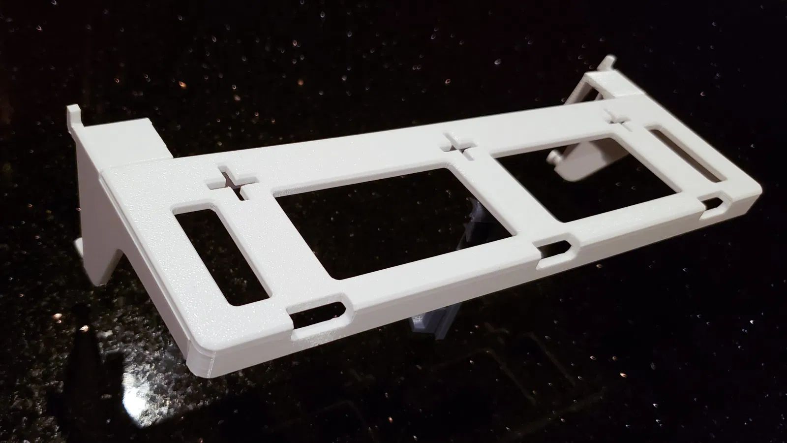 Phiên bản mở rộng của bộ giá đỡ kệ Leviton, cho phép chứa các vật dụng rộng hơn bằng cách bao phủ 2/3 chiều rộng tủ media. In bằng PETG với các cài đặt tối ưu cho độ bền, có tùy chọn dùng PLA để cứng hơn. Đã cập nhật thêm kệ kích thước thường.
