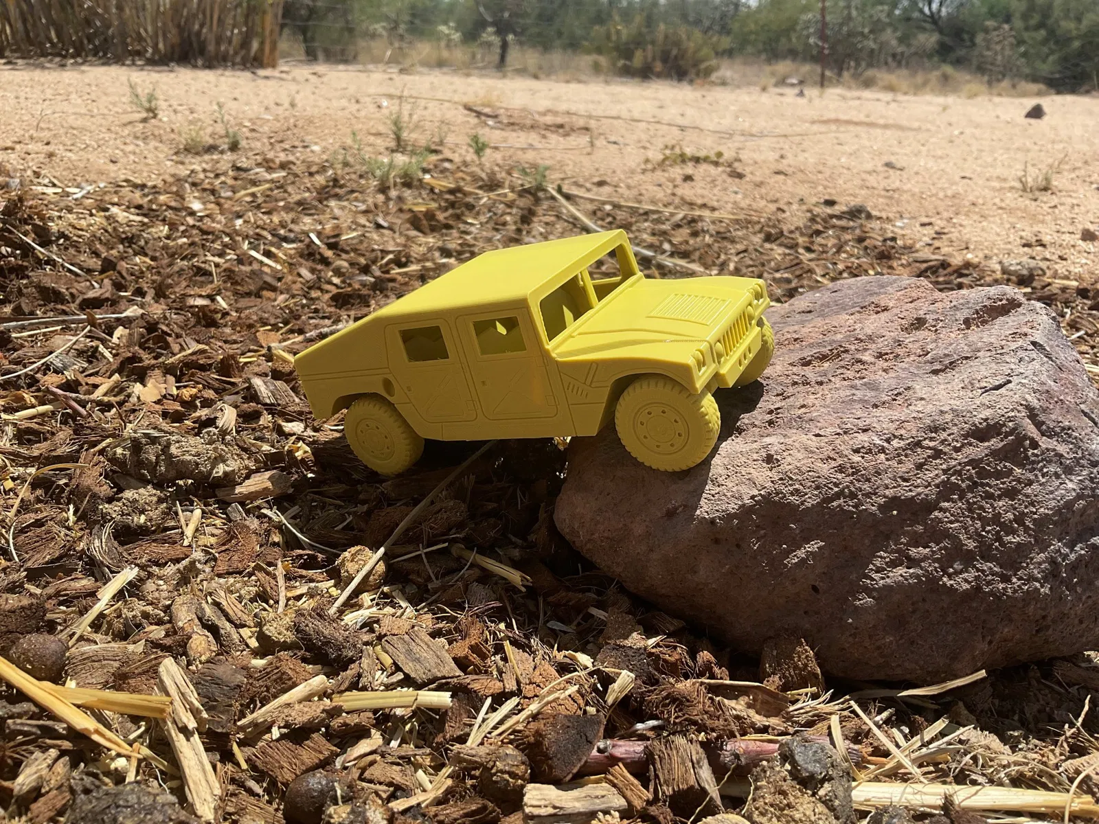 Bản in tại chỗ xe HUMVEE M998 của AM General với bánh xe có thể di chuyển. Thời gian in khoảng 15 tiếng với độ cao lớp 0.2 và mật độ 15%. Mô hình này in không cần hỗ trợ, có một chút sợi nhựa quanh phần cầu nối cửa và cửa sổ phía trước.