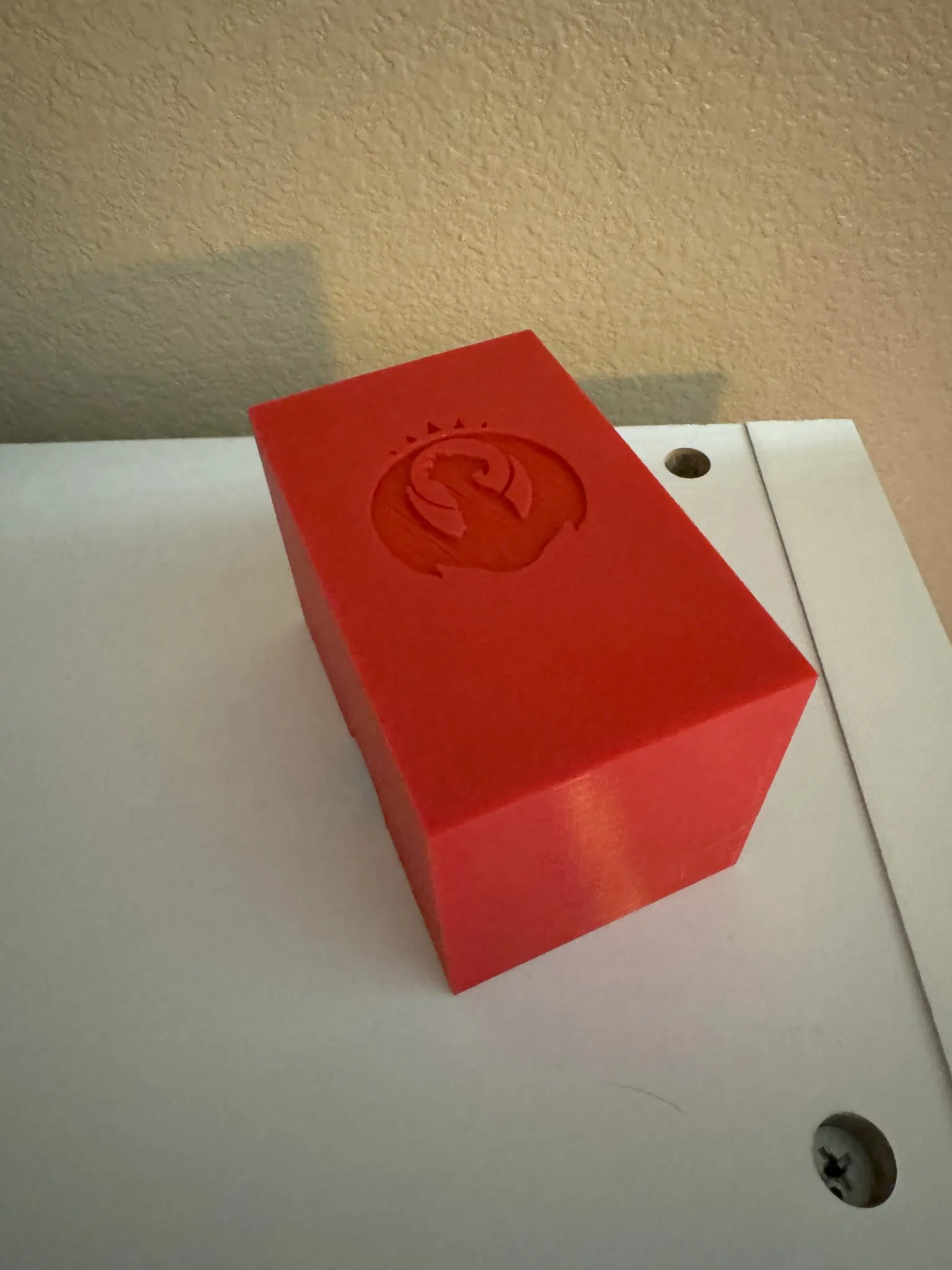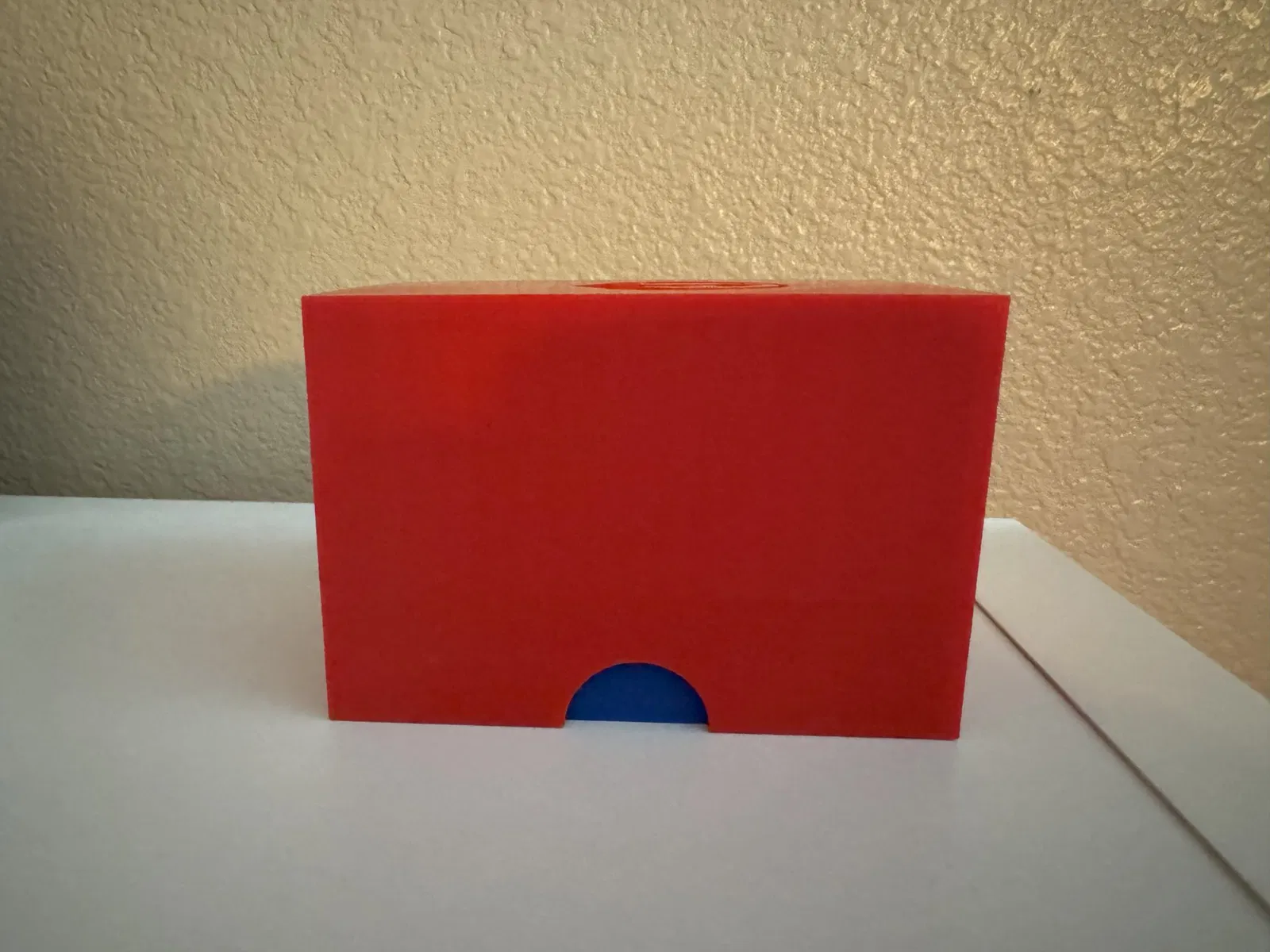 Hộp đựng bộ bài MTG cho 60 lá bài, 15 lá bài phụ và token. Không cần hỗ trợ khi in, chỉ cần đặt bề mặt lớn lên mâm in. Cần 8 viên nam châm tròn 6x3mm.