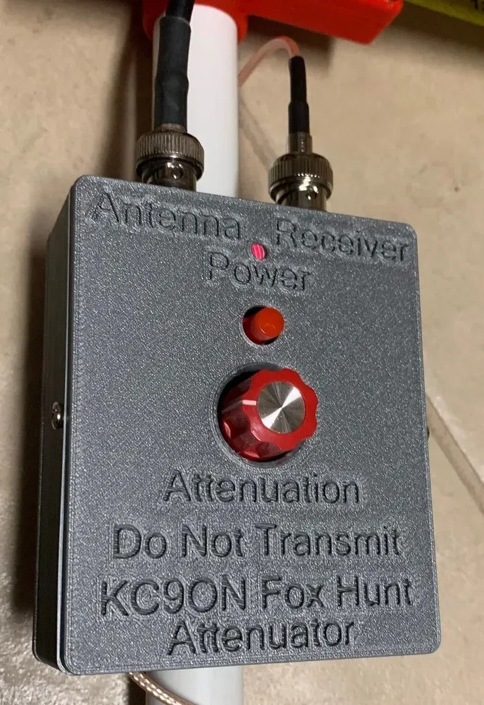 Vỏ bọc đơn giản cho mạch attenuator offset KC9ON, có hai loại nắp che. Bộ suy hao này dùng cho dò tìm máy phát sóng nghiệp dư, trộn tín hiệu 4MHz để suy giảm RF khi đến gần nguồn phát. Hướng dẫn in ấn và tùy chỉnh độ sáng LED bằng cách thay đổi điện trở.