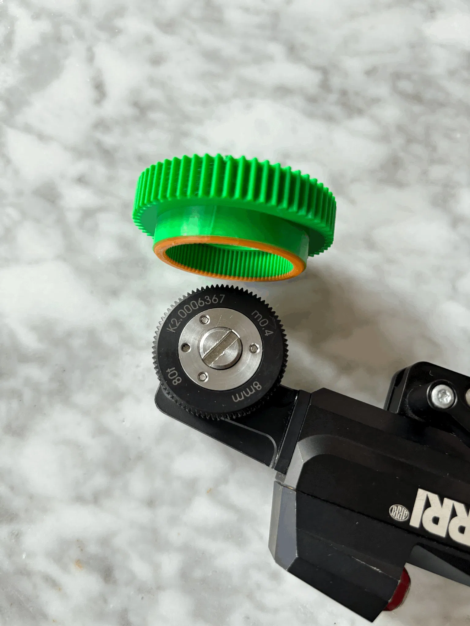 Đây là một bộ bánh răng ép (press-fit) cho bánh răng Panavision m0.4 80t sang bánh răng chuẩn ARRI m0.8 60t.