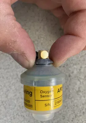 Tôi đã thiết kế nắp che này với kích thước tương ứng với nắp che cell (màu xanh) nguyên bản mà AP Diving lắp trên các đầu nối cảm biến.