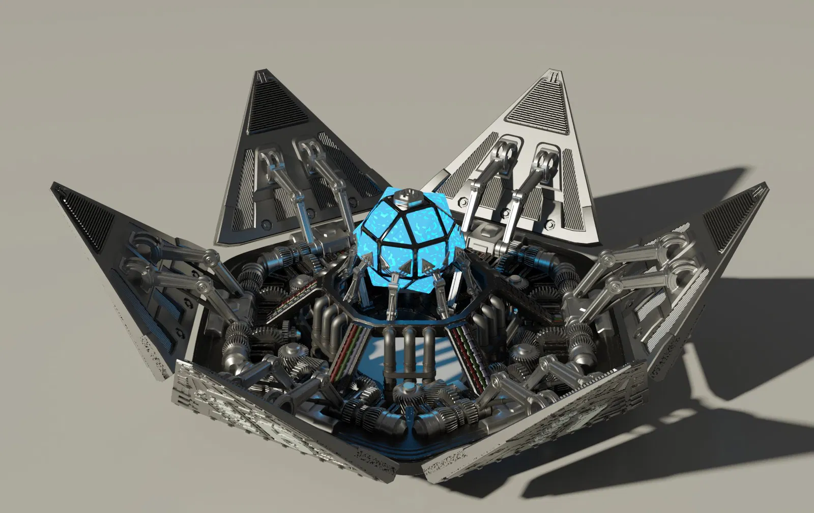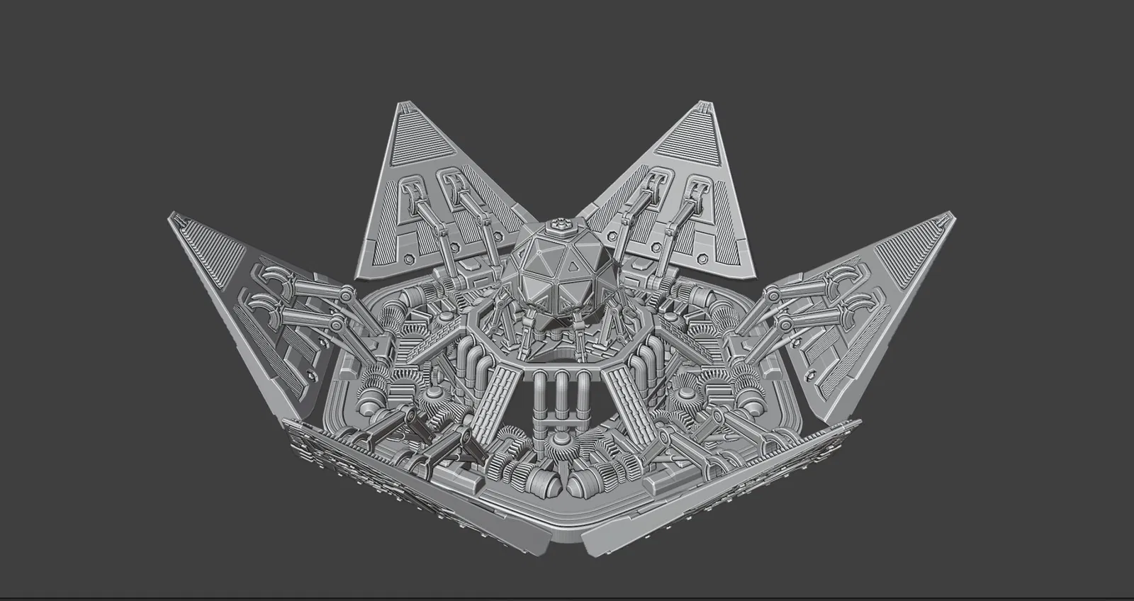 Kiệt tác mọi người đang thấy là đứa con tinh thần của tui, tui đã dành vài buổi tối để tạo ra nó, thường xuyên thay đổi nhiều chi tiết cho đến khi nó trông ổn. Tui lấy cảm hứng từ các khía cạnh kỹ thuật và khoa học viễn tưởng, từ hệ thống ống xả của máy bay chiến đấu, các hầm phóng tên lửa cho đến những viên đá quý giá, mạnh mẽ. Tui muốn nó trông thật nặng nề và phức tạp, như thể đó là một công nghệ bí mật khổng lồ, thử nghiệm trong đời thực.